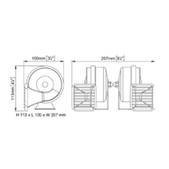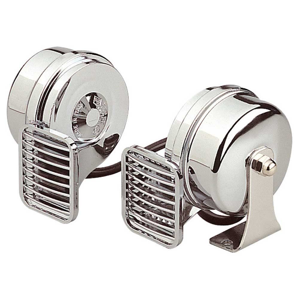 Dettagli: Coppia tromba elettrica mare 12/V *** Coppie di trombe elettriche MARCO per piccole imbarcazioni. Gruppo sonoro elettromagnetico accuratamente protetto, costruito con materiale anticorrosione, cromatura resistente alla salsedine. Complete di staffe di fissaggio e relè. 12/v - 10 Amp.