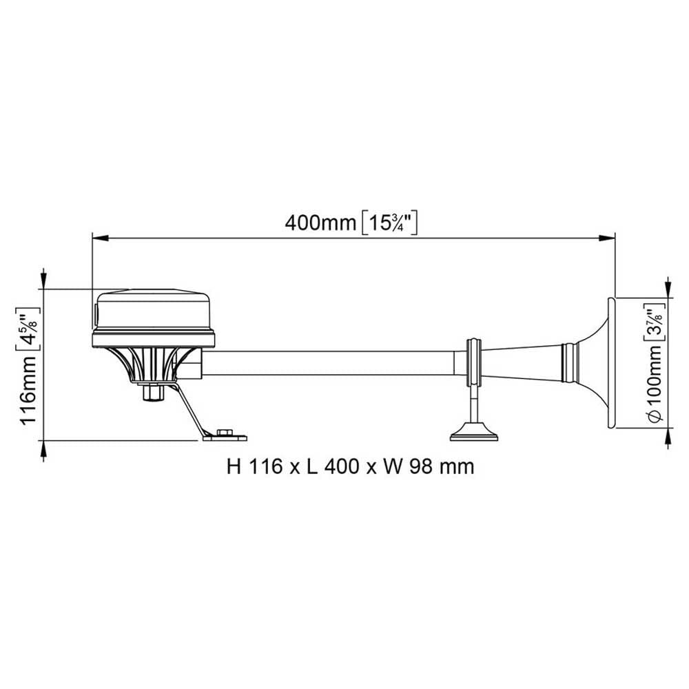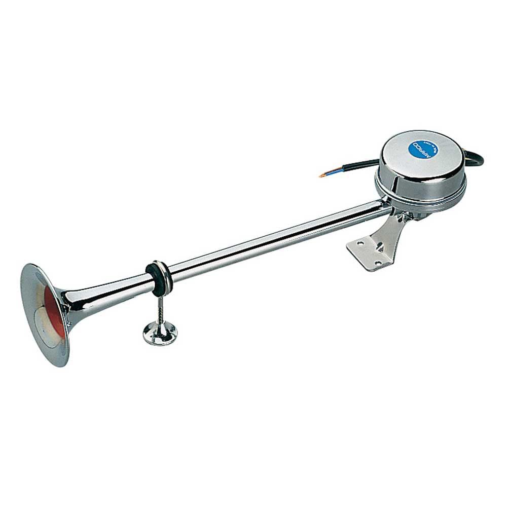 Dettagli: Tromba elettrica 12/V *** Trombe elettromagnetiche MARCO EM2 singole con cornetto in acciaio inox. Gruppo sonoro di elevata potenza accuratamente protetto e costruito con materiale anticorrosione. Complete di staffa di montaggio: 12/v - 5 Amp. Dim. lungh. Mm 400.