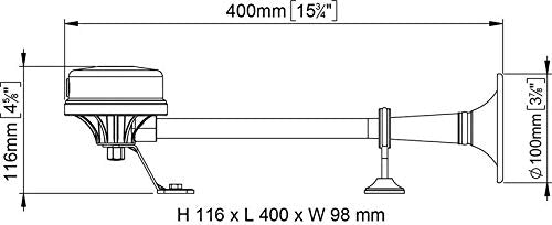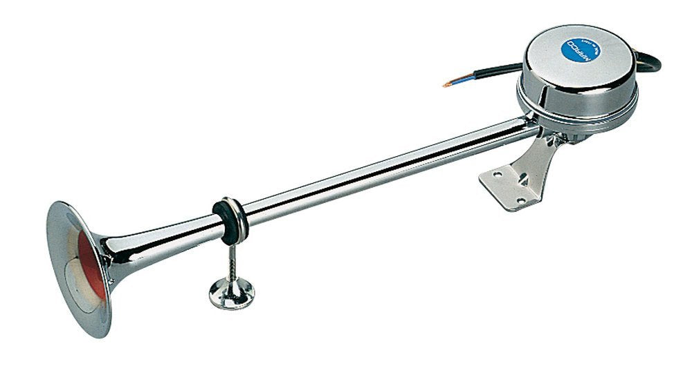 Dettagli: Tromba ottone cromato 24/v *** Trombe elettromagnetiche MARCO EM2 singole con cornetto in acciaio inox. Gruppo sonoro di elevata potenza accuratamente protetto e costruito con materiale anticorrosione. Complete di staffa di montaggio: 24/v - 4 Amp. Dim. lungh. Mm 400.
