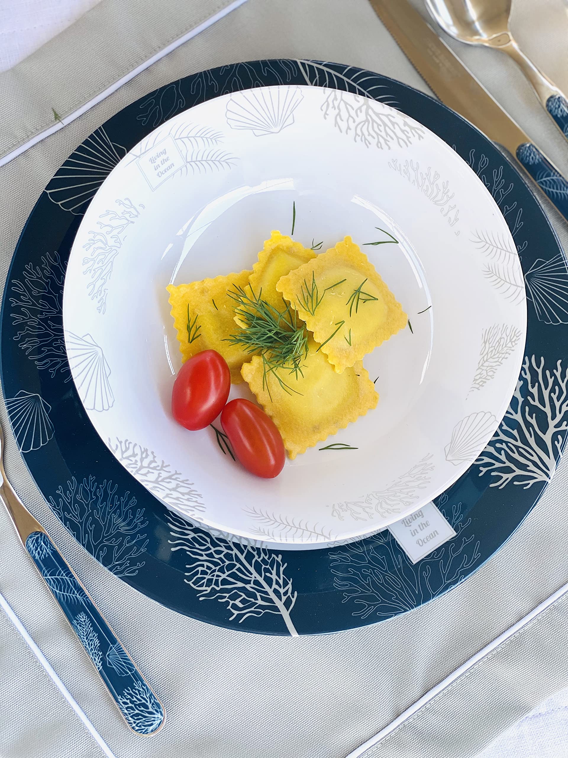 - La ciotola in melammina della collezione Living è leggera con fondo antiscivolo. Il design con coralli nei colori blu navy e beige è elegante e alla moda, perfetto per tutte le occasioni.