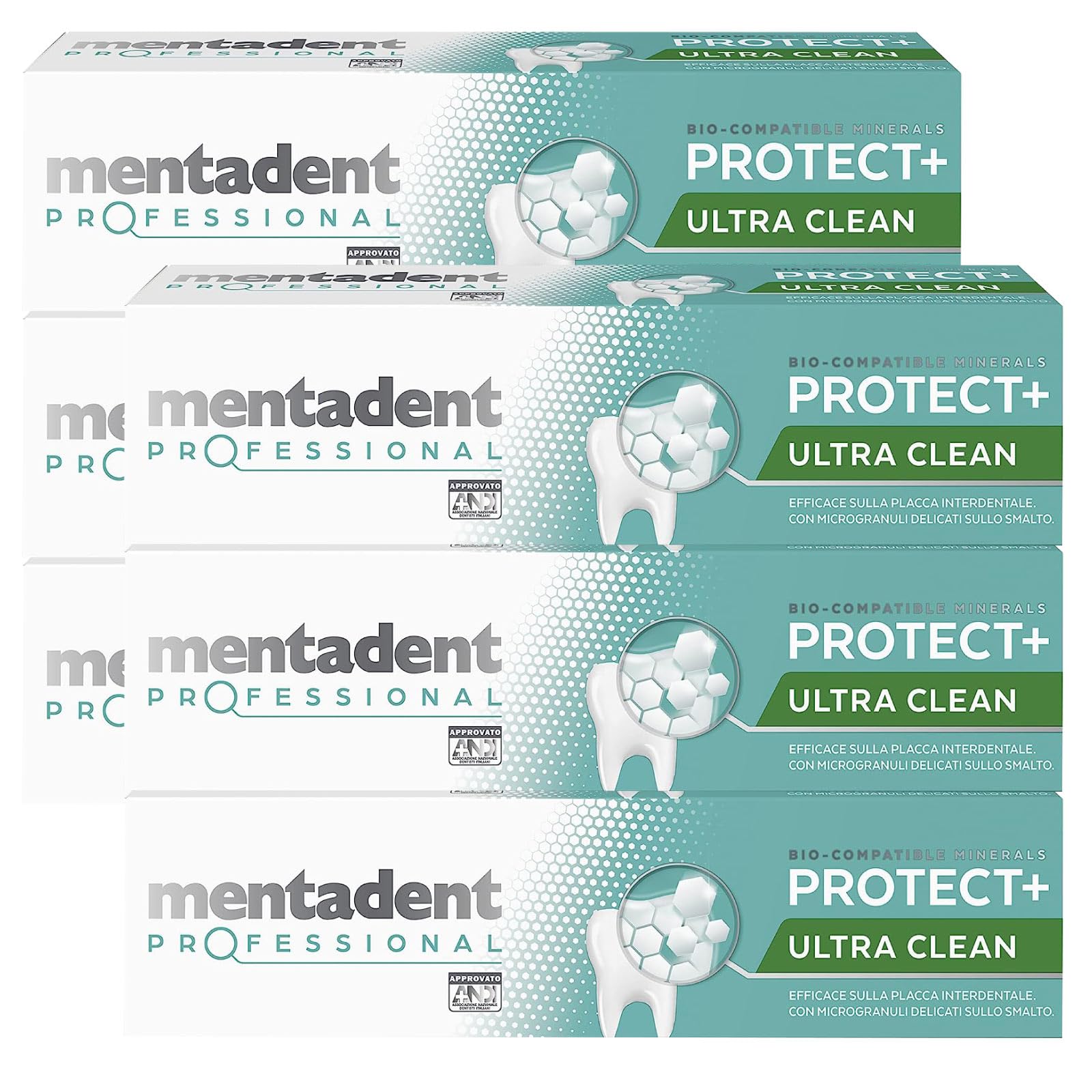 Mentadent Professional Protect+ Ultra Clean Dentifricio Rimuovi Placca Remineralizzante con Minerali Biocompatibili e Microgranuli - 6 Flaconi da 75ml