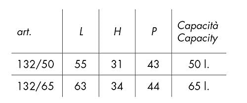 Modella: cm. 55x43xh.31 - 50 litri