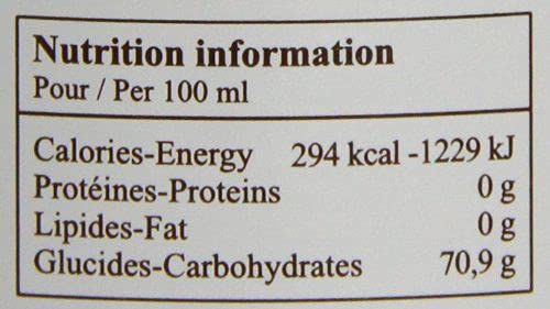 - Senza alcool, Halal, Kosher. Sciroppo di zucchero puro. Aromi naturali. Non adatto per diete vegane e vegetariane.