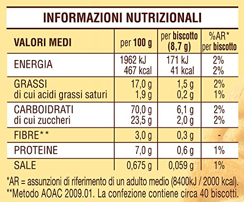 Dettagli: 350g Biscotto Mulino Bianco Biscotto Tarallucci I TARALLUCCI sono biscotti di pasta frolla preparati con uova fresche provenienti solo da galline allevate all'aperto. Sono realizzati con un impasto di pasta frolla profumato e leggero, per iniziare bene la giornata.