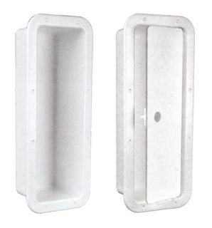Dettagli: Nicchia c/sport. p/estint.2 KG b. *** Nicchia porta estintore a parete in plastica bianca per estintori da kg 2: Con sportello. Dimensioni come 37.124.10. Dim. est. sportello mm 226x484.