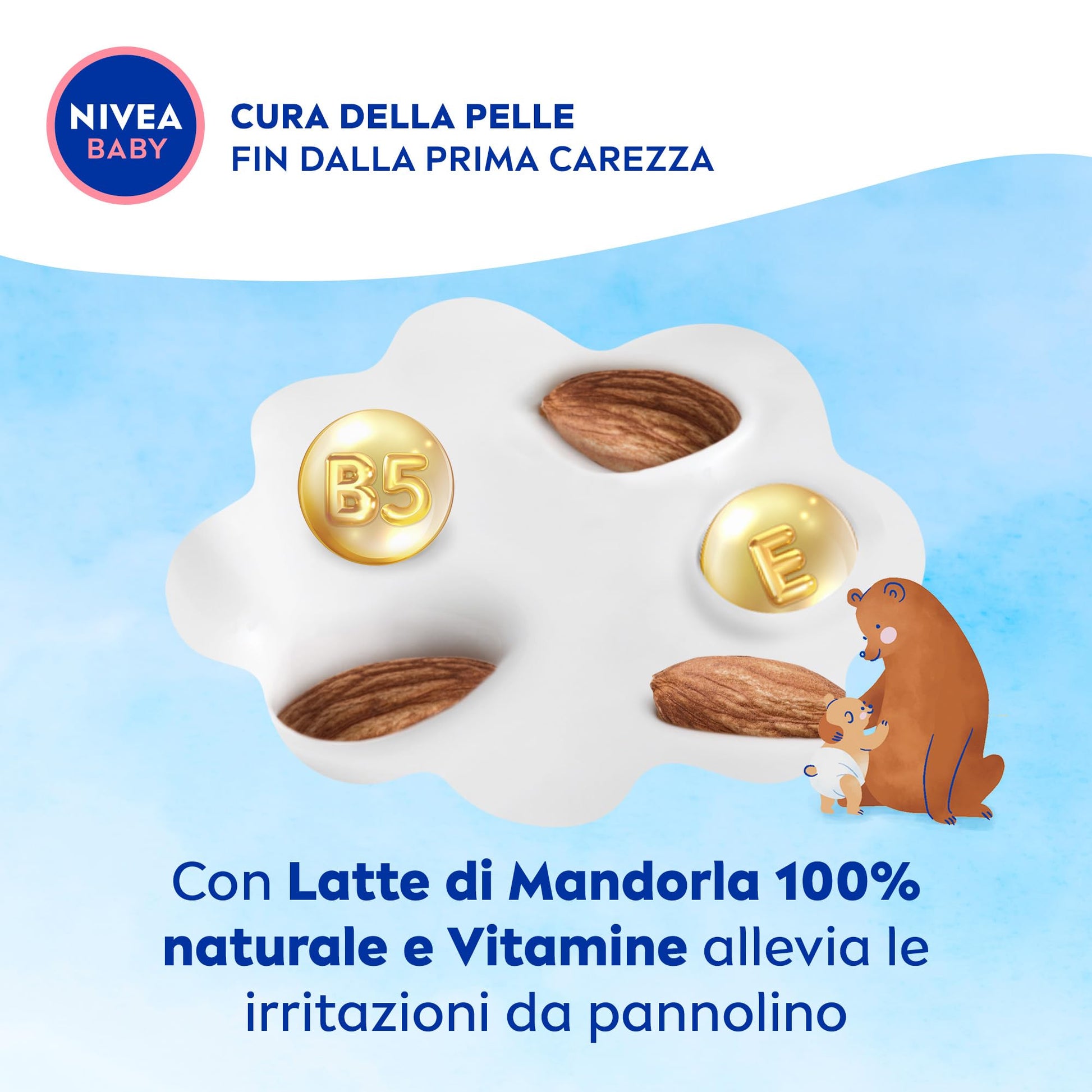 NIVEA BABY Cambio Pannolino Pasta Protettiva 100ml, Crema cambio pannolino lenitiva ed emolliente, Pasta cambio pannolino con Latte di Mandorla e Vitamine, Crema corpo neonato per una protezione 12h