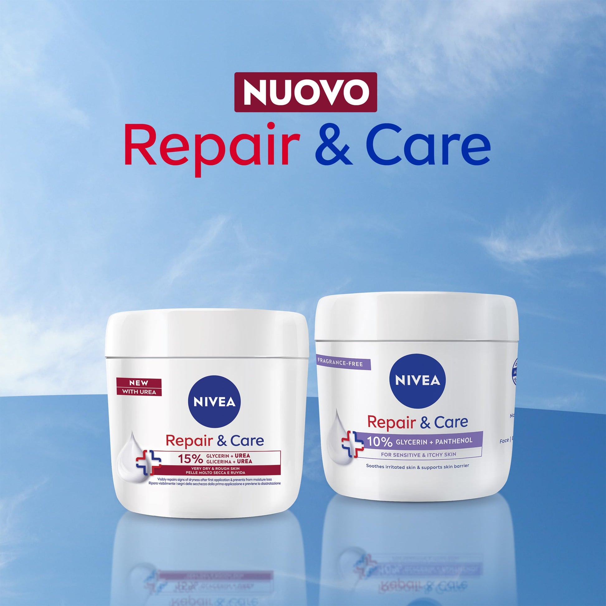 NIVEA Crema Repair & Care Urea 400 ml, Crema corpo idratante pelle secca, molto secca e ruvida, Crema multiuso per corpo, viso e mani con Glicerina e Urea per nutrimento profondo e idratazione 72h