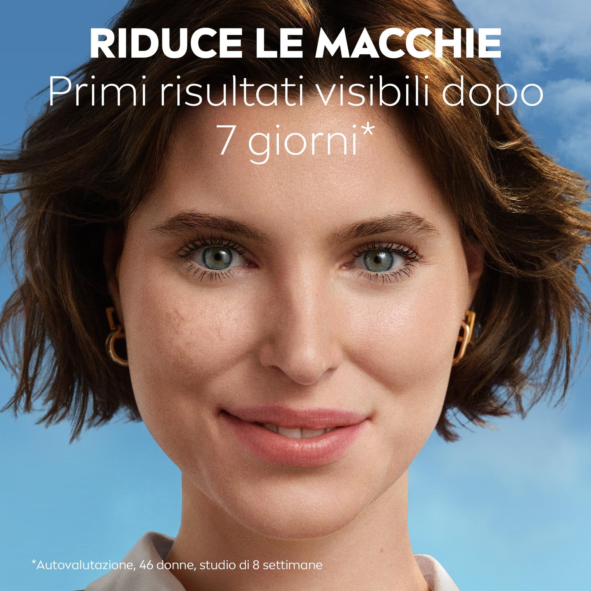 - Thiamidol brevettato – Il siero schiarente macchie viso è potenziato con Thiamidol, ingrediente brevettato che agisce sull'iperpigmentazione riducendo le macchie scure e ne previene la ricomparsa