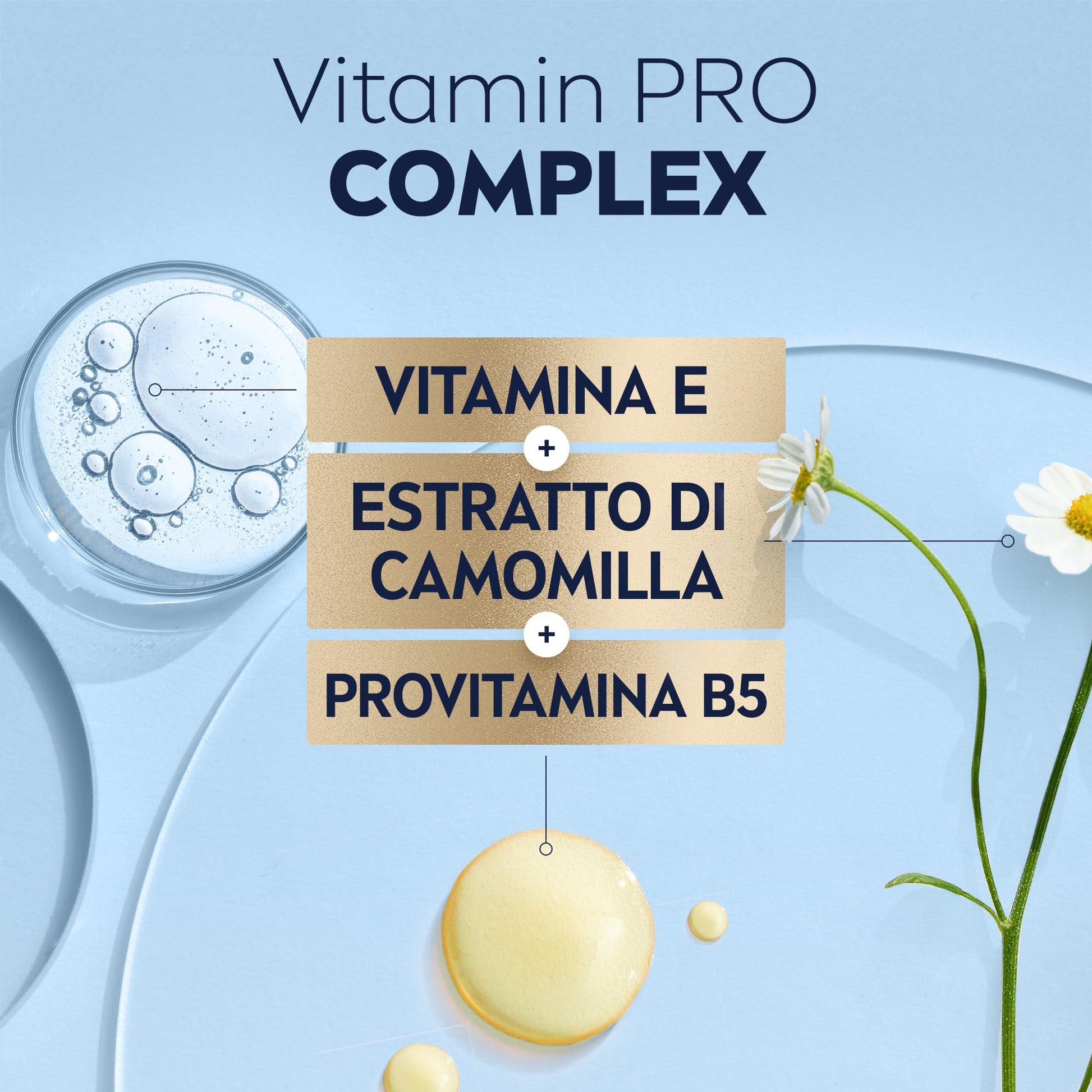 - Agenti attivi – La crema uomo viso è arricchita con Vitamin PRO complex con Vitamina E, Estratto di Camomilla e Provitamina B5, una potente combinazione per un effetto immediato e a lungo termine