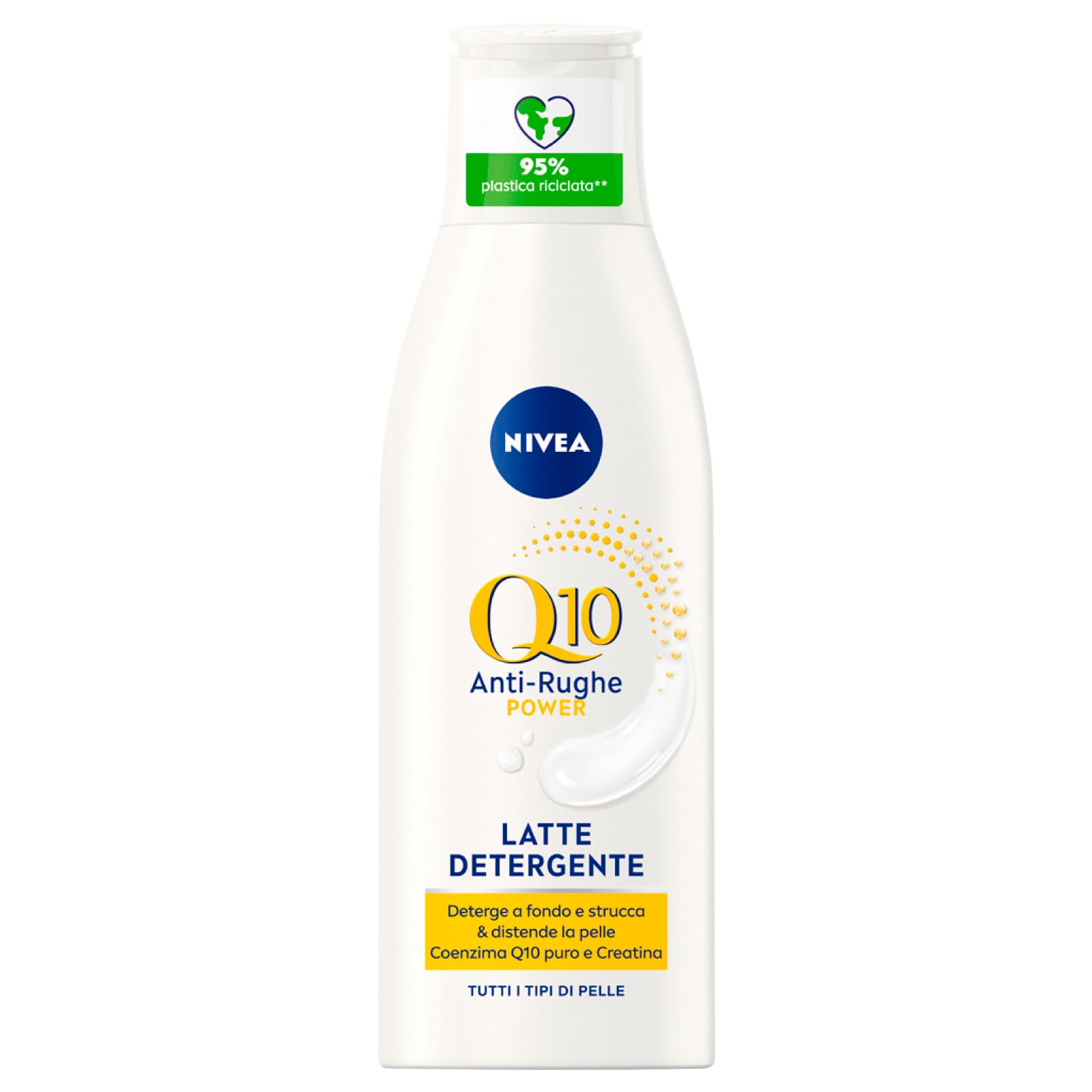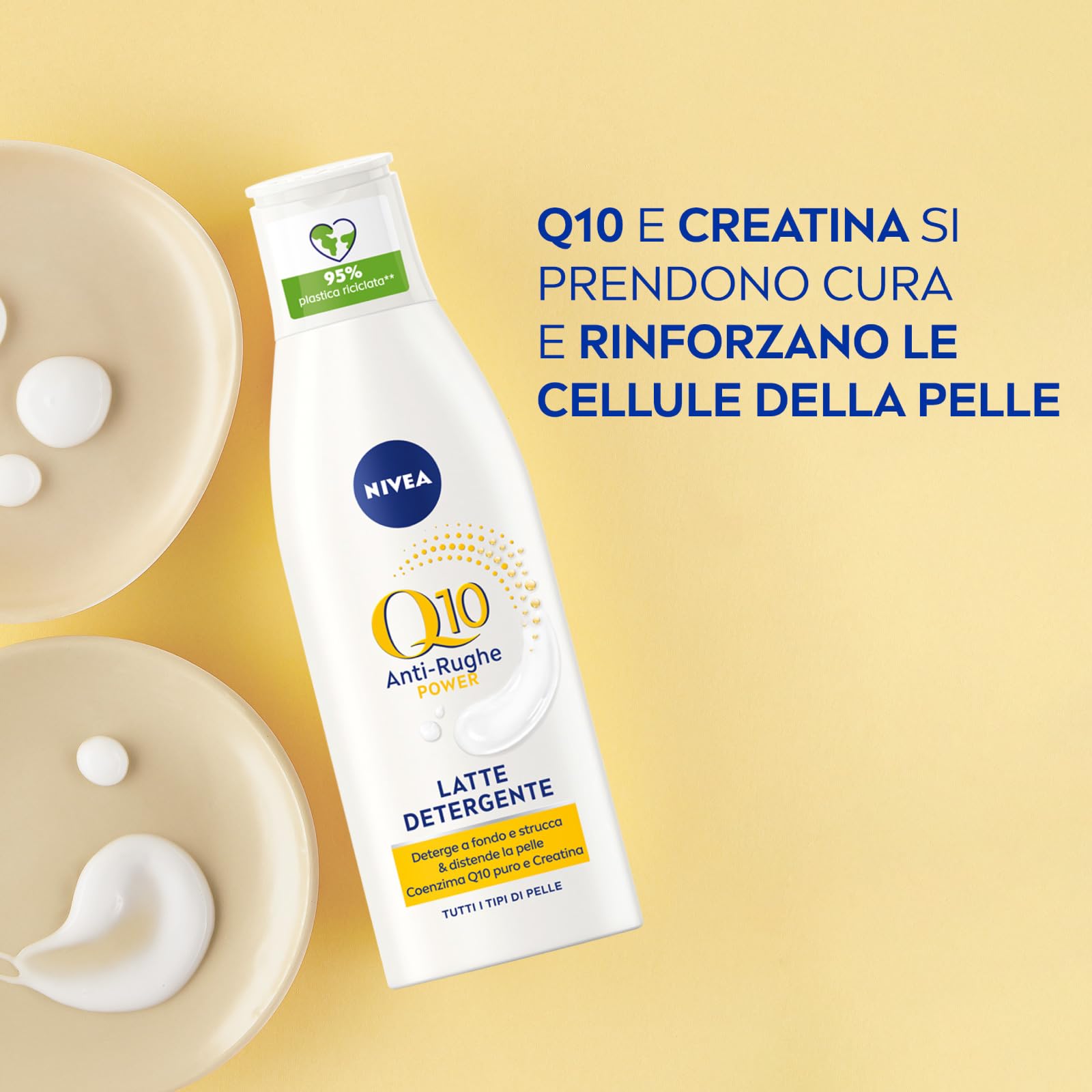 NIVEA Q10 Power Latte Detergente Viso Anti-Rughe Struccante Idratante ad Azione Anti-Età Tonificante Elasticizzante Antiossidante 48h Formula con Creatina per Pelli Sensibili - 4 Flaconi da 200ml