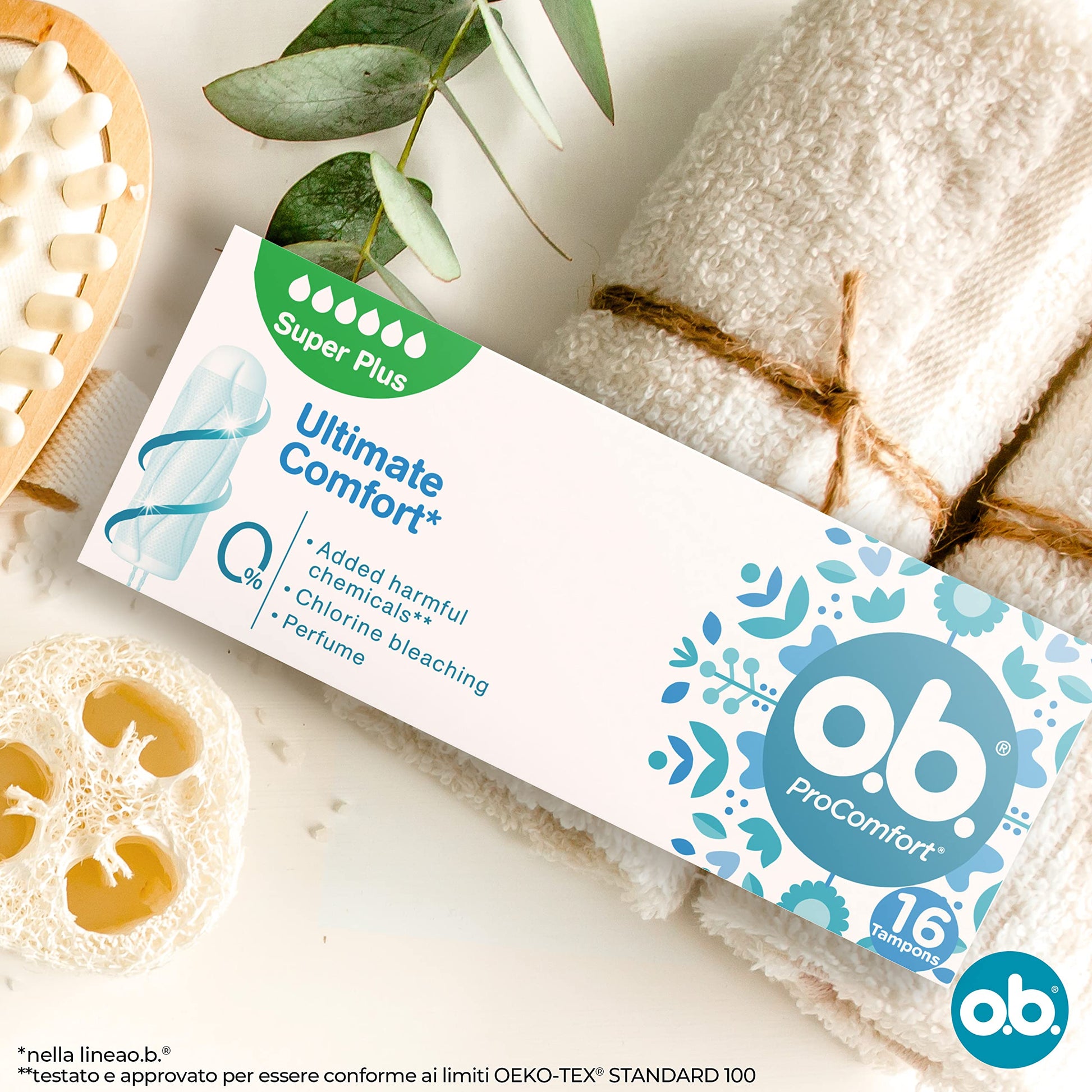 - Contenuto della confezione – ob assorbenti interni ProComfort, per mestruazioni molto intense, con comodo cordino in fibra sintetica, livello di assorbenza: super plus, 1 confezione da 16 assorbenti