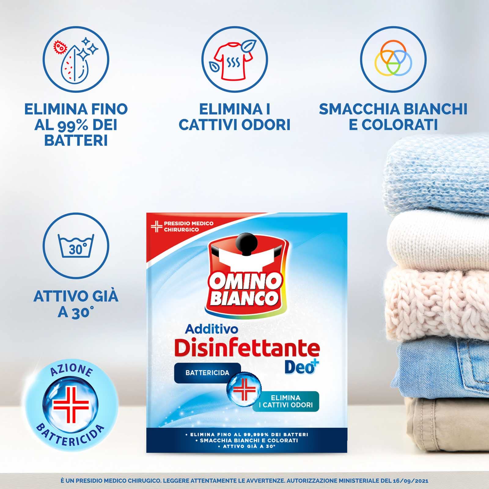 Omino Bianco - Additivo Disinfettante in Polvere per Bucato, Smacchia e Elimina i Cattivi Odori, con Tecnologia Deo+, 3 Confezioni da 450 g ognuna
