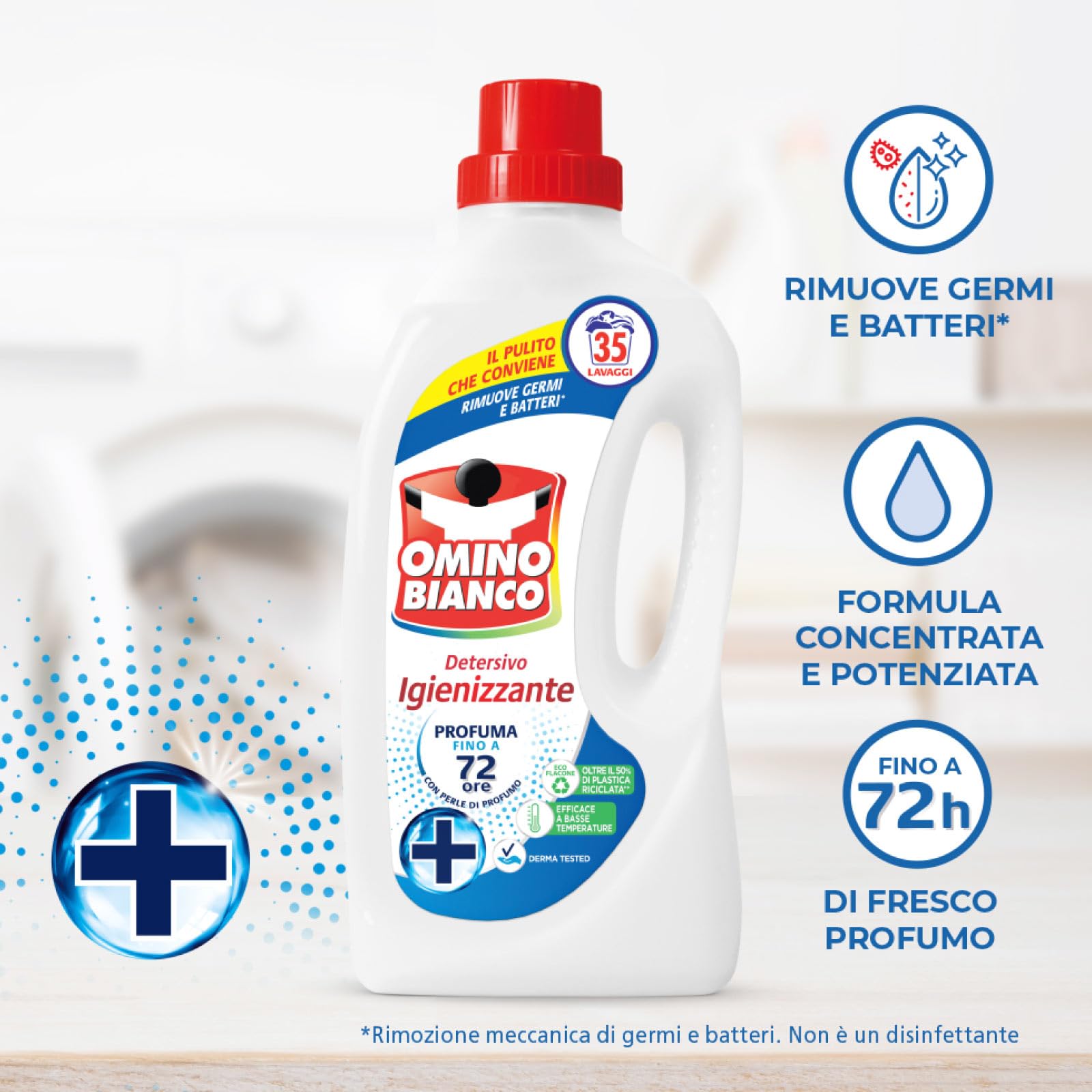 Omino Bianco - Detersivo Lavatrice Igienizzante Liquido, Igienizza i Capi e Rimuove Germi e Batteri, 35 Lavaggi, 1400 ml x 4 Flaconi