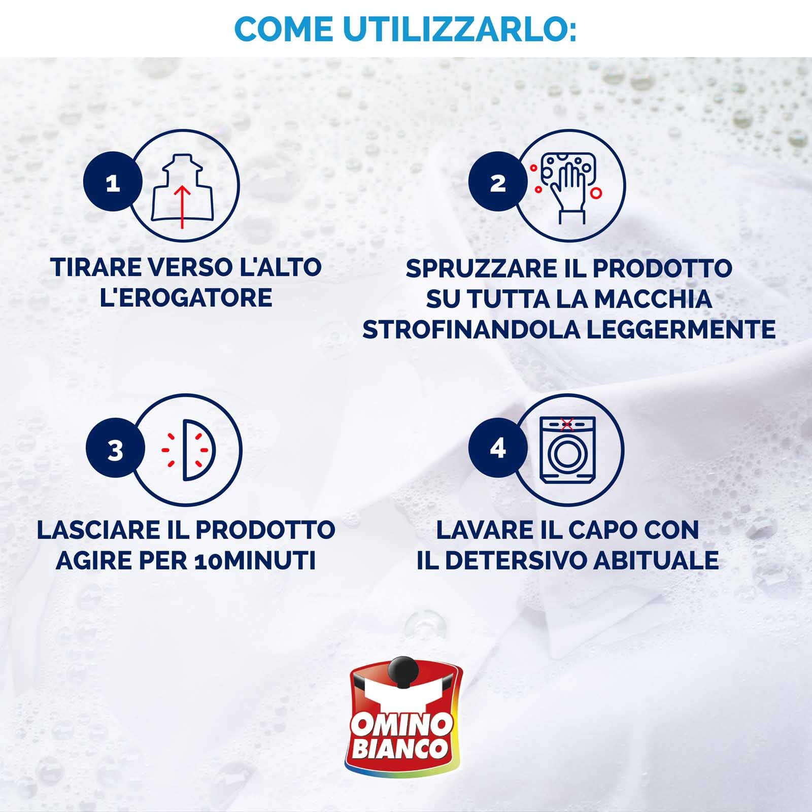 Omino Bianco - Pre-trattante Smacchia Facile, Smacchiatore Bucato, Delicato su Tessuti, per Capi Scuri e Colorati, 500 ml x 4 Pezzi