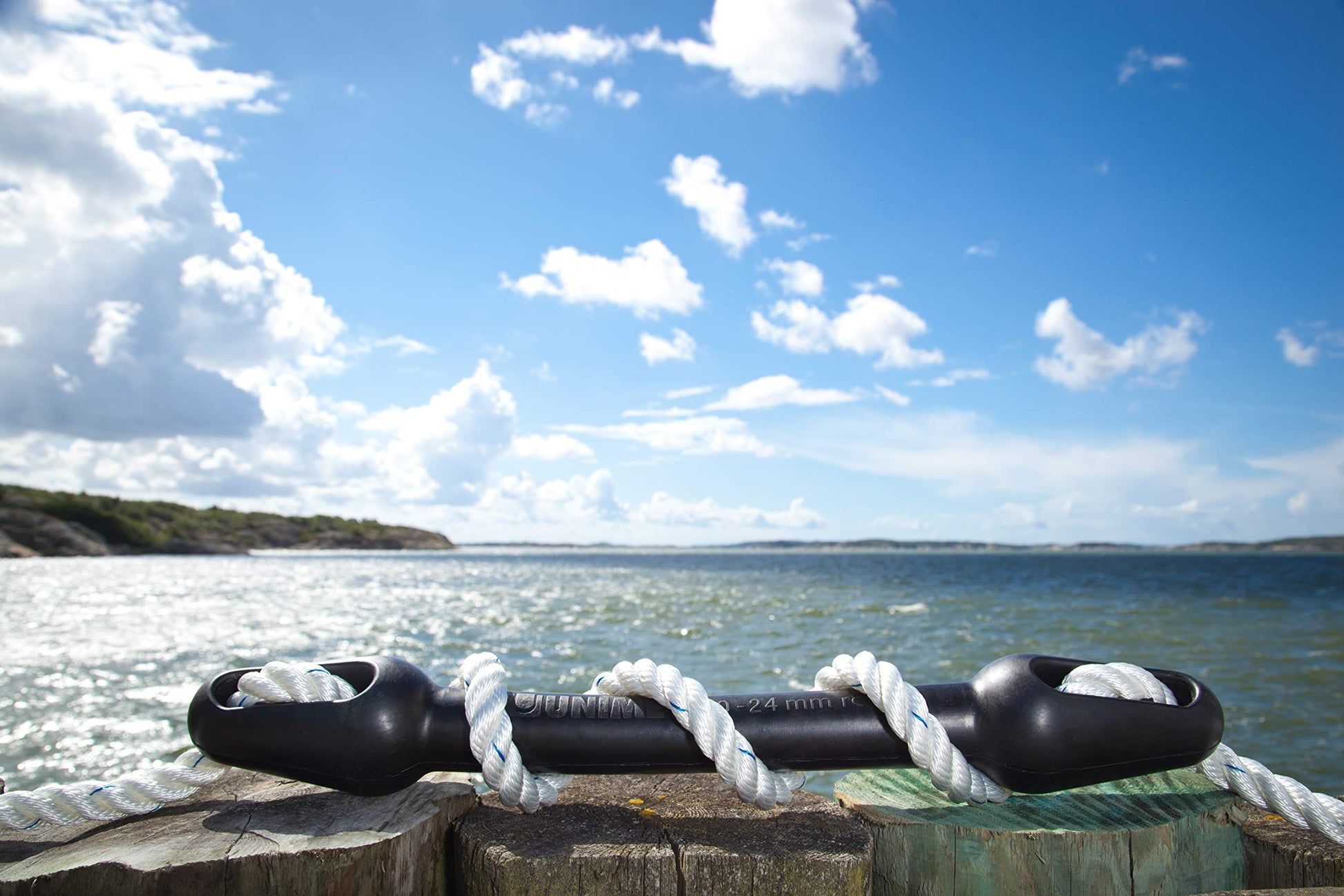 - L'Unimer Mooring Compensator ha un meccanismo di bloccaggio unico ed efficiente integrato che garantisce un bloccaggio sicuro della cima. Gli elementi interni autobloccanti in poliammide nero fermano completamente le linee di sfregamento. Questo ti dà anche un montaggio più semplice e lineare della sagola ed elimina la torsione del compensatore.