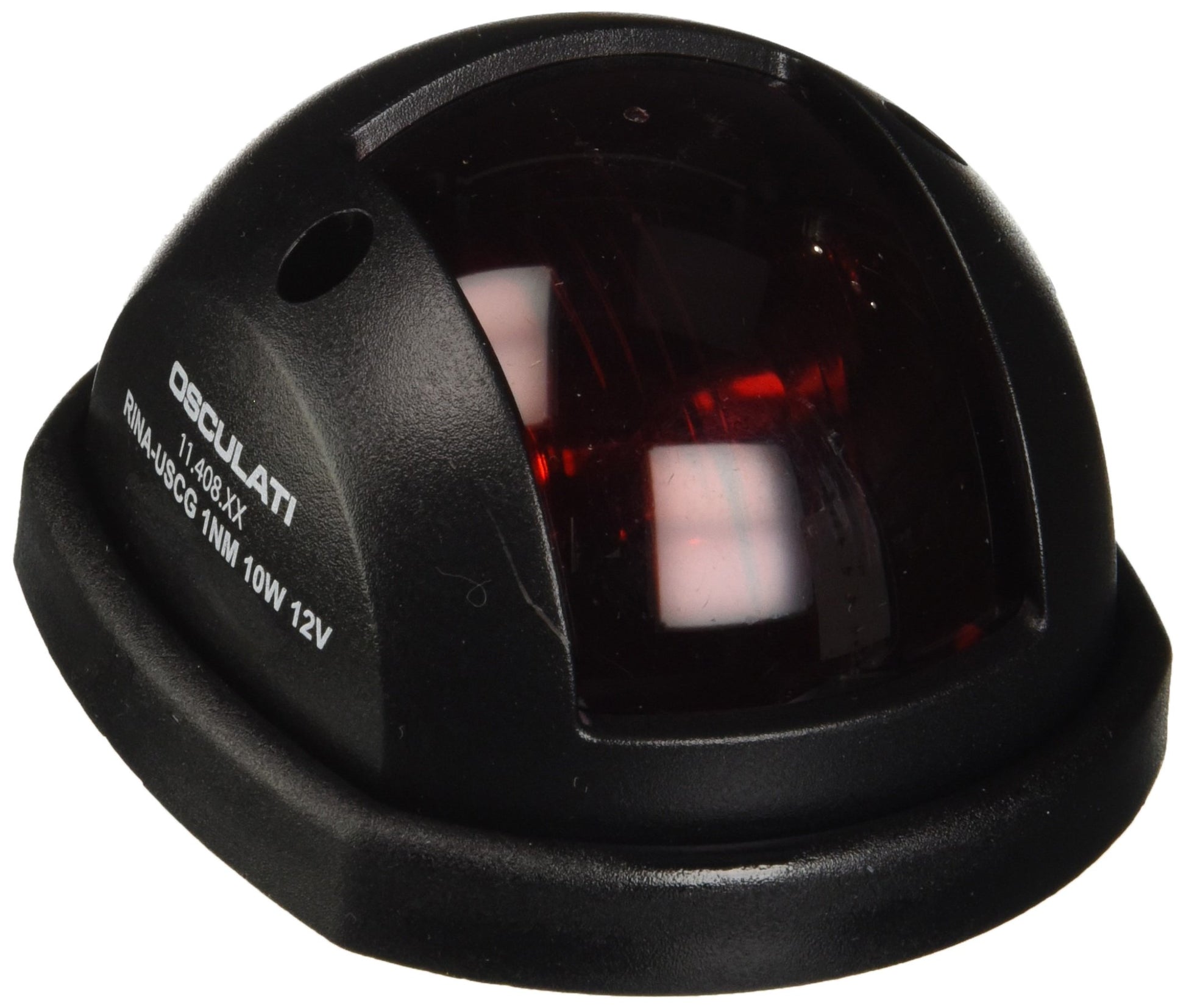 Dettagli: Luce di via rossa compatta per imbarcazioni fino a 12 mt, omologata R.I.N.A, lato sinistro / carcassa nera.