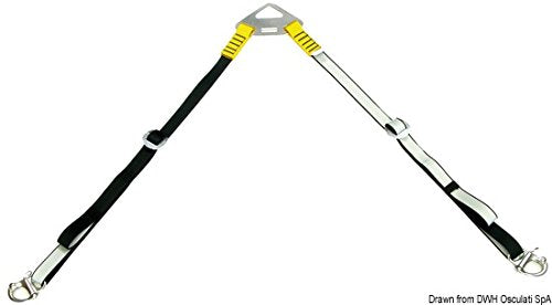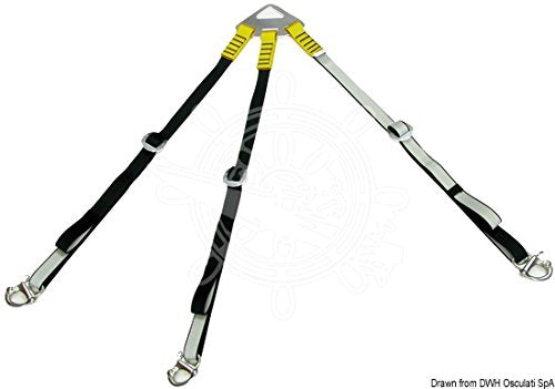 Dettagli: Elevata resistenza ai raggi UV per il sollevamento di tender di qualsiasi tipo. Piastra di sospensione e fibbie di regolazione in alluminio anodizzato ad alta resistenza. Moschettoni in acciaio inox AISI 316 a sgancio rapido. Carico massimo 400 kg. Universale per qualsiasi gonfiabile in quanto regolabile. Articolo brevettato e certificato CE.