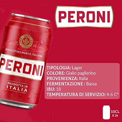 Peroni Birra, Cassa con 24 Birre in Lattina da 33 cl, 7.92 L, Birra Lager con Malto 100% Italiano dal Gusto Moderatamente Amaro, Gradazione Alcolica 4.7% Vol