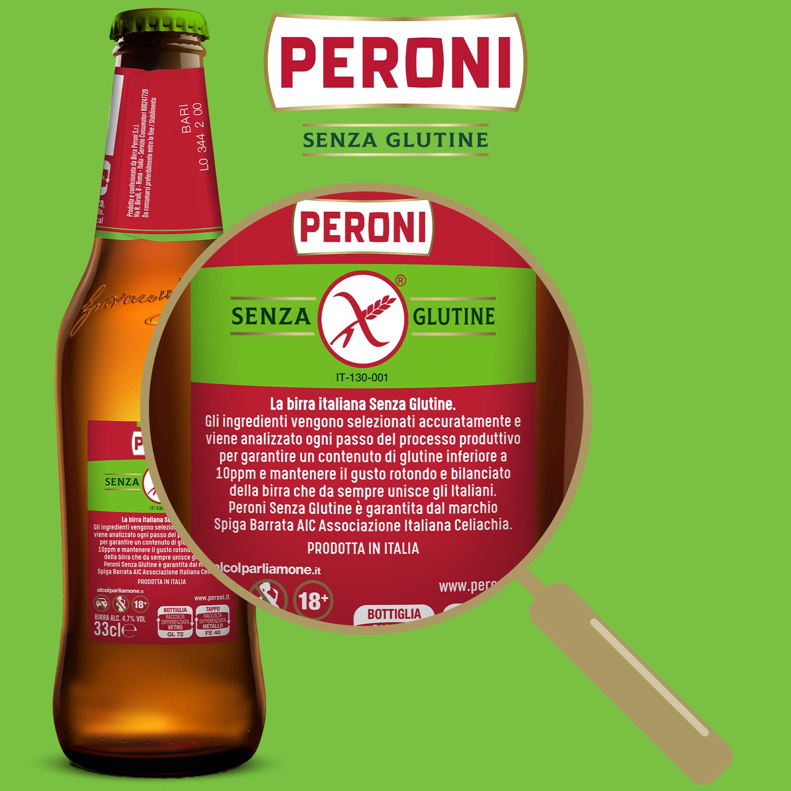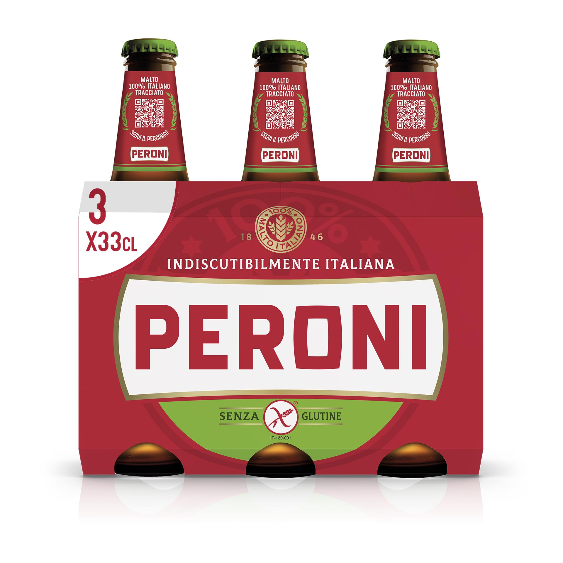 Peroni, Birra Senza Glutine, Pack con 3 Birre in Bottiglia da 33cl, Birra Lager con Malto 100% Italiano dal Gusto Moderatamente Amaro, Gradazione Alcolica 4.7% Vol