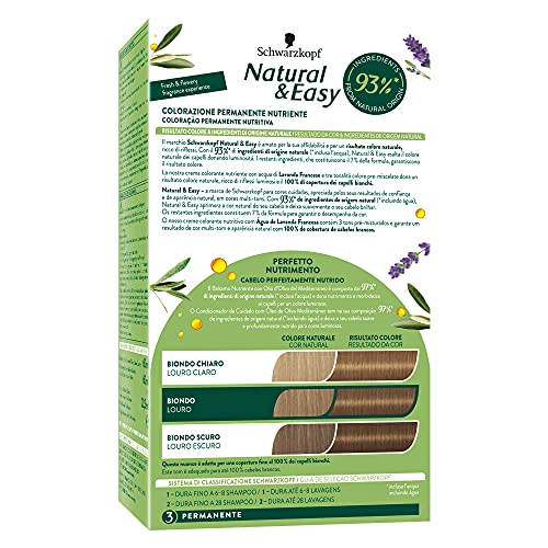- Schwarzkopf Natural & Easy Crema colorante: Tinta permanente per un colore effetto naturale, dei riflessi luminosi e una perfetta copertura professionale dei capelli bianchi