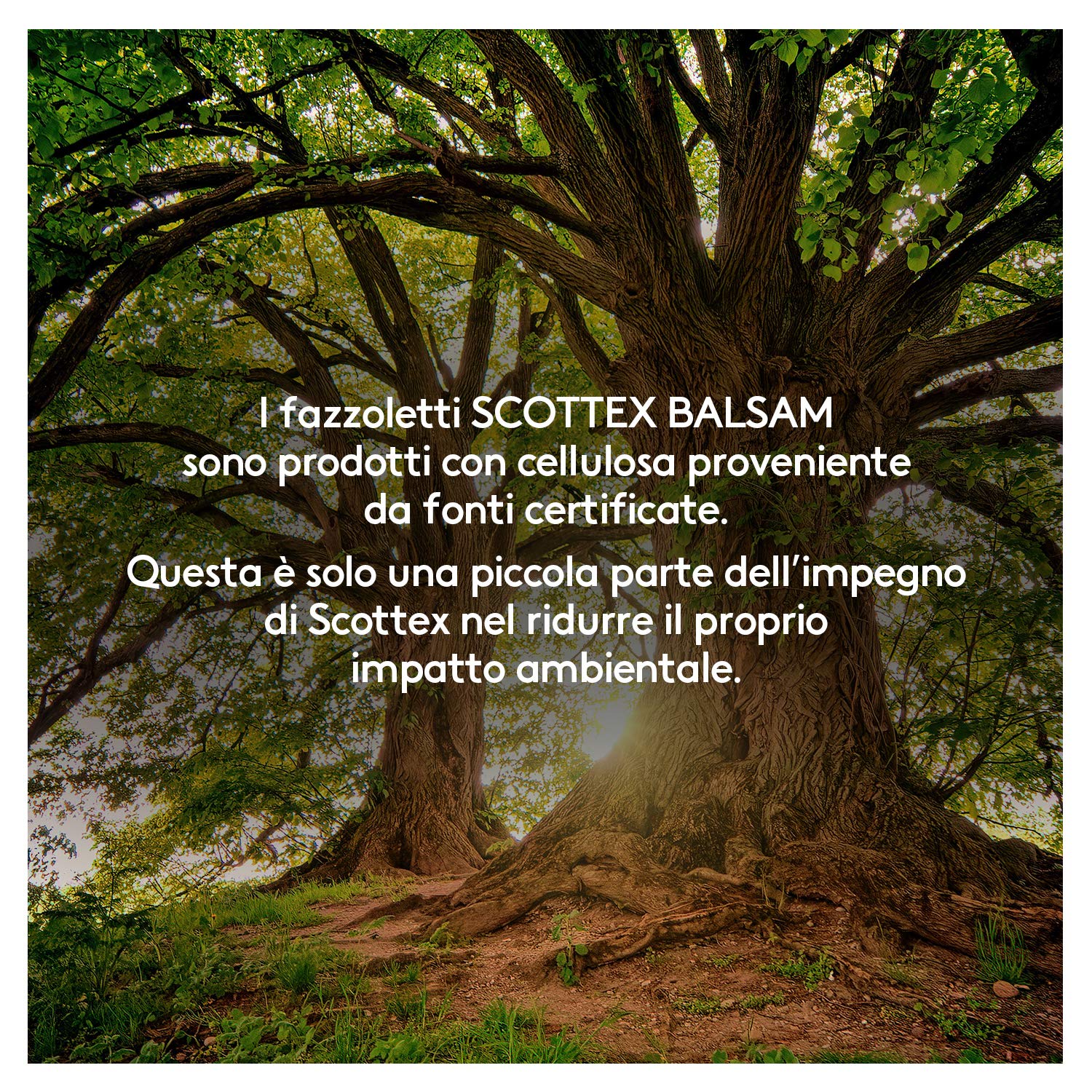 - PRODOTTI CON CARTA FSC: I fazzoletti Scottex Balsam sono prodotti in Italia con carta certificata FSC che proviene da fonti gestite in maniera responsabile; questa è solo una piccola parte dell'impegno di Scottex nel ridurre il proprio impatto ambientale