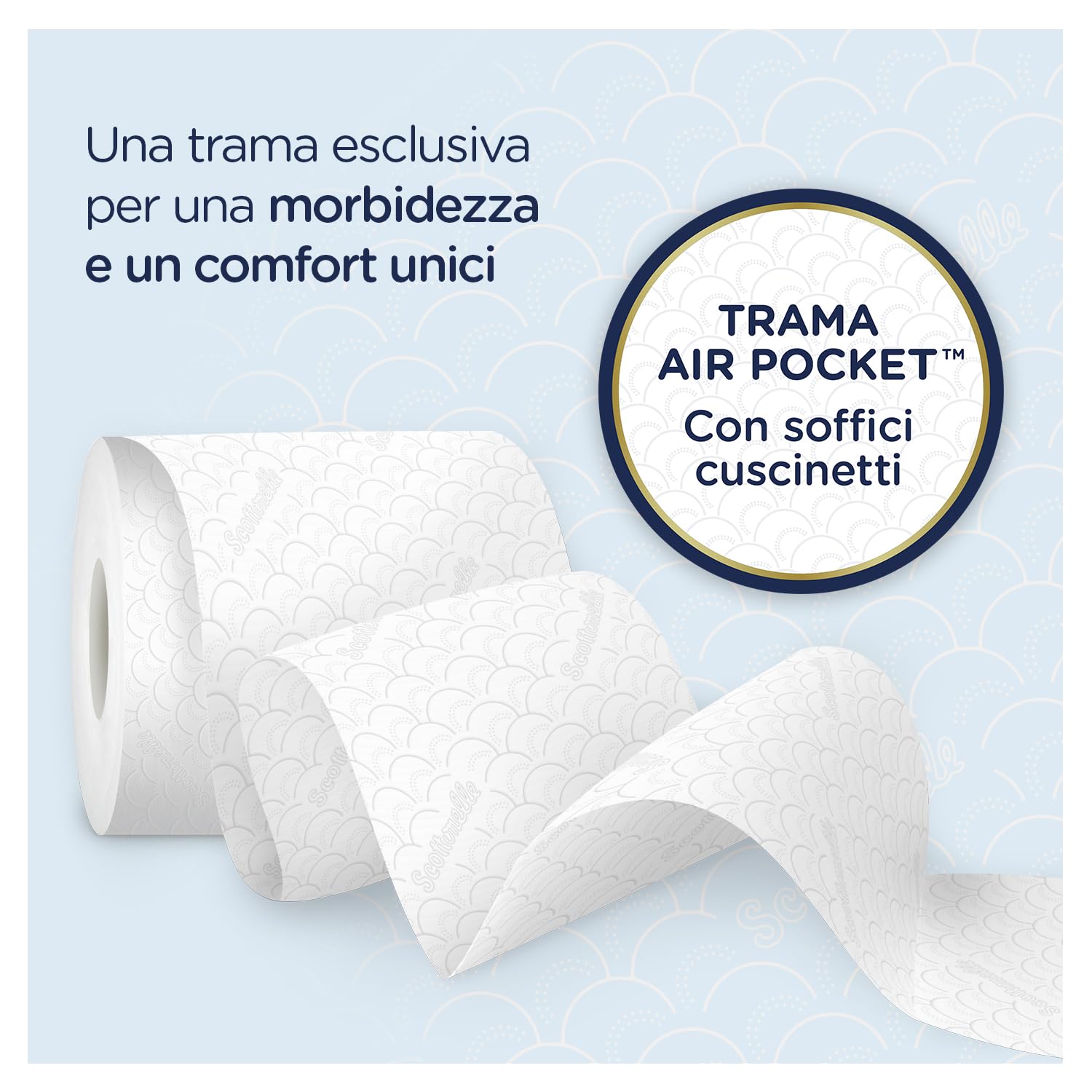 - SOFFICE SULLA PELLE: L'esclusiva trama Air Pocket rende Scottonelle una carta igienica soffice sulla pelle e piacevole al tatto