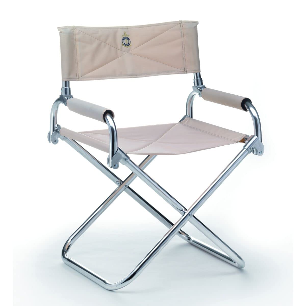 Dettagli: ? Sedia Pieghevole Con Maniglia Per Il Trasporto ? Realizzata In Tessuto Acrilico ? Tubi In Alluminio Ø25 Mm ? Peso: 4.400 Kg ? Colori: Blu Ed Ecrù