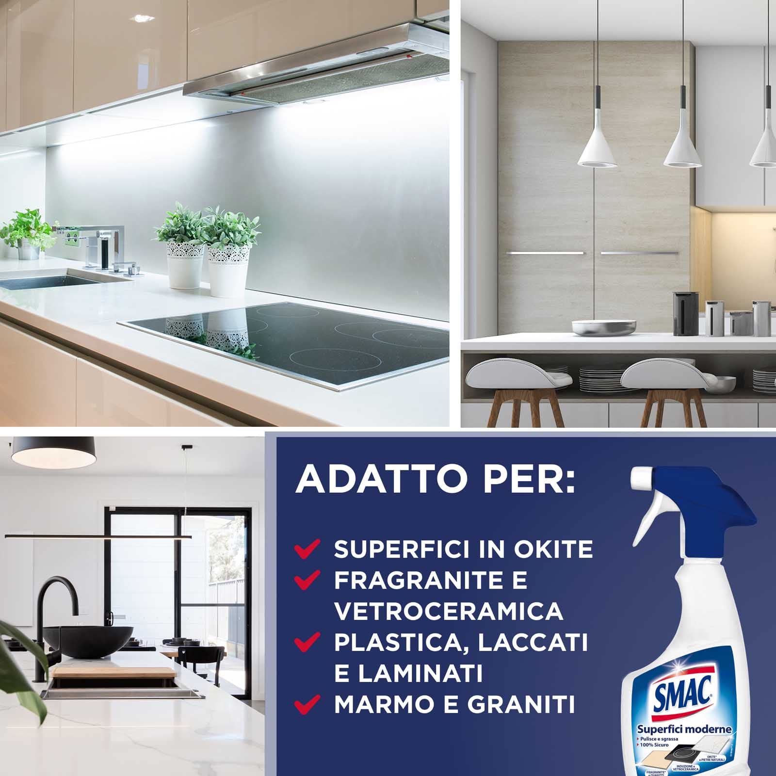 Smac - Sgrassatore Spray per Superfici Moderne e Delicate, Detergente per Casa e Cucina, 500ml x 4 Pezzi
