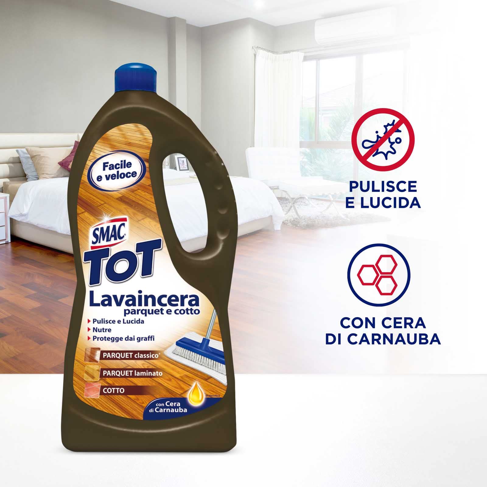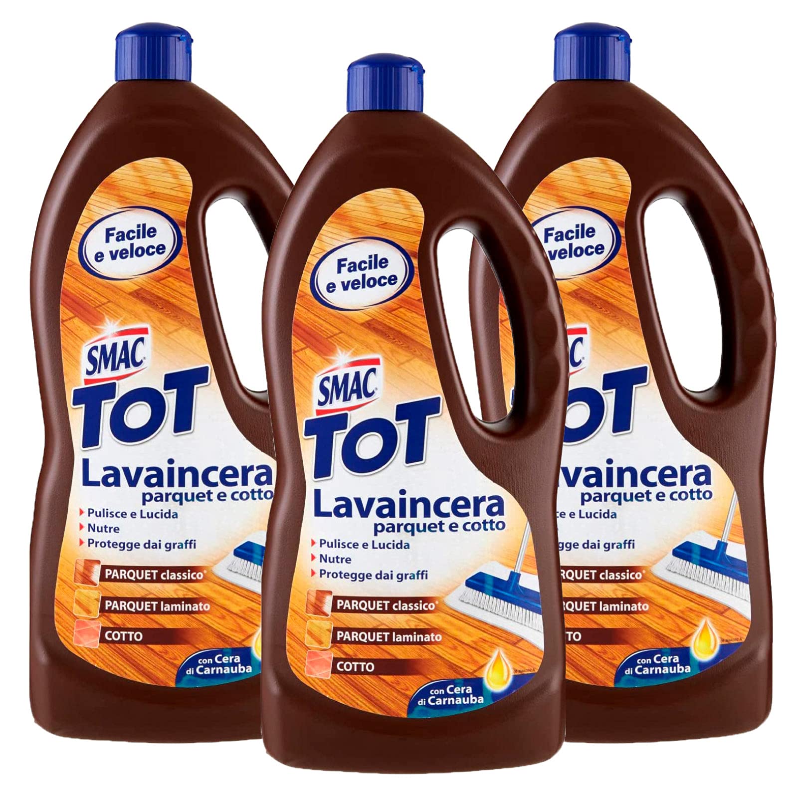 Smac - Tot Lavaincera Parquet e Cotto, Detergente Pavimenti con Cera di Carnauba, Azione Lucidante e Protettiva, 1000ml x 3 pezzi