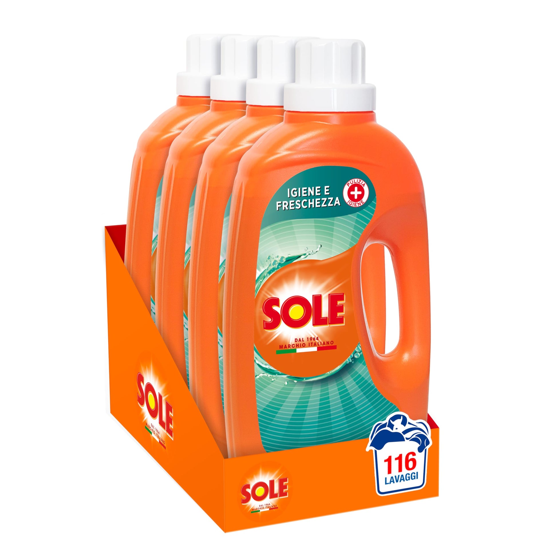 Sole Detersivo Lavatrice Igiene e Freschezza 116 Lavaggi, (4x29), Formula igienizzante, Detersivo Lavatrice Liquido Igiene e Freschezza, contro batteri e cattivo odore