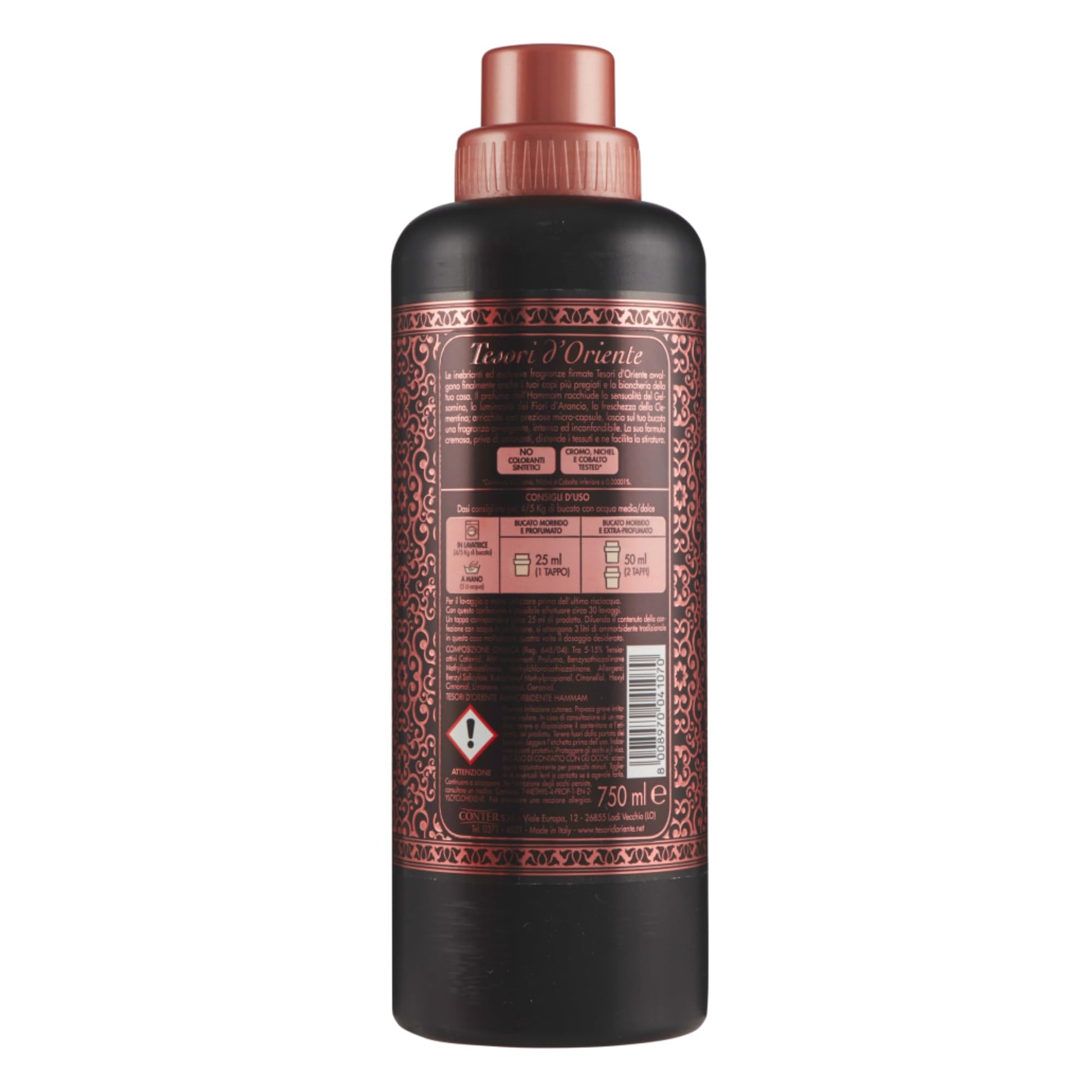 Dettagli: Descrizione prodotto Tesori D'Oriente HAMMAM 750 ML Tesori D'Oriente Fiori di Loto 750 ML Tesori D'Oriente Byzantium 750 ml Tesori D Authorizente Ayurveda 750 ml Indicazioni Di solito si consiglia di utilizzare circa 1/4 di tazza di ammorbidente per grandi carichi di lavaggio. Aggiungere l'ammorbidente nel distributore di risciacquo o direttamente all'acqua di risciacquo. Per l'uso in asciugatrice, seguire le istruzioni del produttore sull'involucro dell'ammorbidente in fogli. Per ottenere i migliori risultati, considerare l'utilizzo di una quantità extra di ammorbidente per asciugamani ed evitare una sovrapconcentrazione che potrebbe lasciare residui sui vestiti.