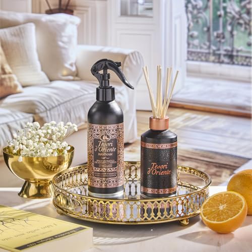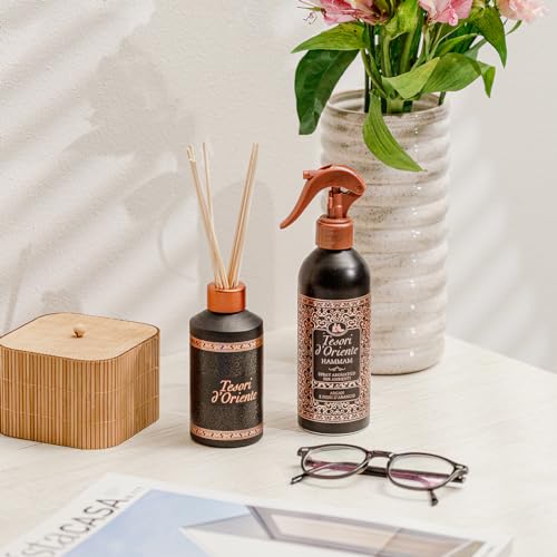 - Un elegante diffusore aromatico con bastoncini che emana una fragranza muschiata e ambrata, dai benefici effetti rilassanti