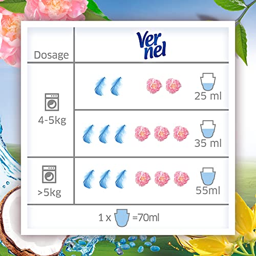 Dettagli: Nuovo Vernel Naturals, l'ammorbidente concentrato liquido per la tua lavatrice senza siliconi e senza coloranti. Vernel Naturals ha il 99% di ingredienti di origine naturale. 100% Vegano - approvato da Vegan Society. Ci prendiamo cura del tuo bucato e dell'ambiente. Essere naturali significa esserlo a 360 gradi, ed è per questo che Vernel Naturals si impegna in ogni suo aspetto nel contribuire in un cambio positivo per le persone e per il pianeta. Dagli ingredienti ricavati sostenibilmente fino al packaging riciclabile al 100%, crediamo che la qualità e la responsabilità debbano passare dalle mani di ciascuno di noi. È tutto parte del nostro impegno globale nel creare prodotti che tengano conto del futuro. Formato convenienza da 8 flaconi da 46 lavaggi, per un totale di fino a 368 lavaggi.
