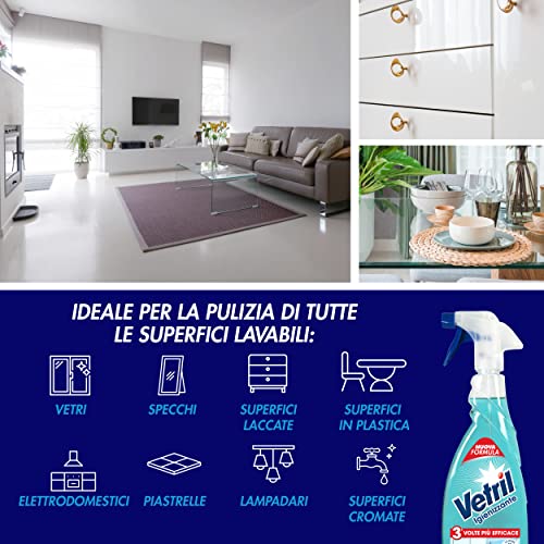 Dettagli: Descrizione Vetril è lo storico brand specialista nella pulizia di vetri e specchi, diventato riferimento per la categoria. Storia Impegnato nella ricerca e nell'innovazione, il brand ha ampliato nel tempo la sua gamma di prodotti offrendo degli spray multi superficie, adatti quindi non solo alla pulizia di vetri e specchi ma di tutta la casa. Ampio Catalogo I prodotti Vetril puliscono tutte le superfici lavabili senza bisogno di risciacquare: vetri e specchi, superfici laccate, in plastica, in acciaio, elettrodomestici, superfici cromate, lampadari e piastrelle. L'ampio catalogo combina azioni sgrassanti, pulenti e antipolvere, insieme all'attenzione su sostenibilità e ambiente. Ingredienti Ingredienti - 648/2004/CE (www.boltondet.com). Contiene anche: profumi