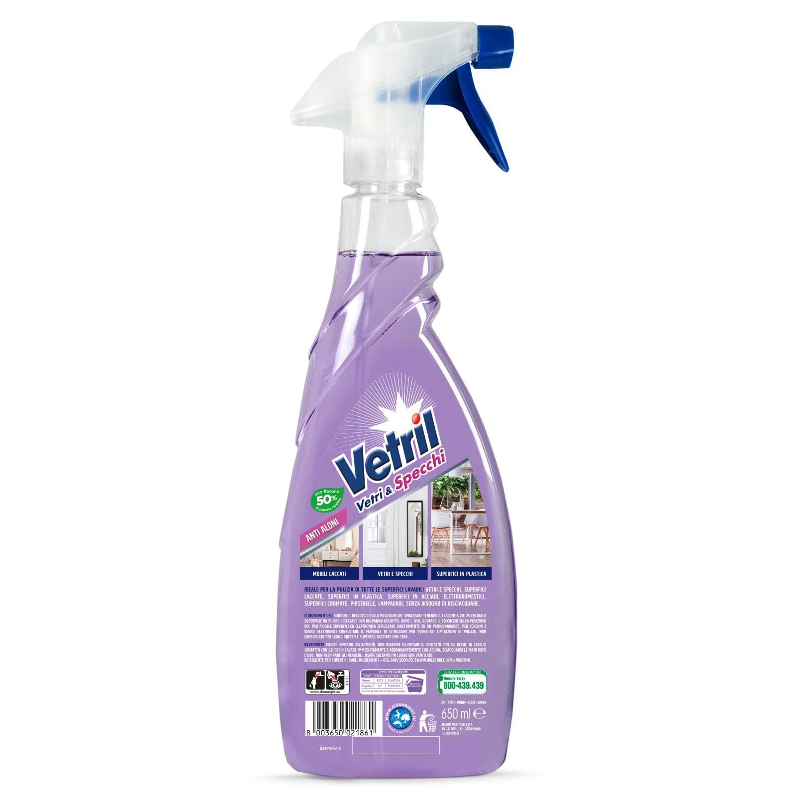 Vetril - Vetri e Specchi, Detergente Spray Tecnologia Asciuga Rapido, Brillantezza Senza Aloni, 650 ml x 3 Pezzi