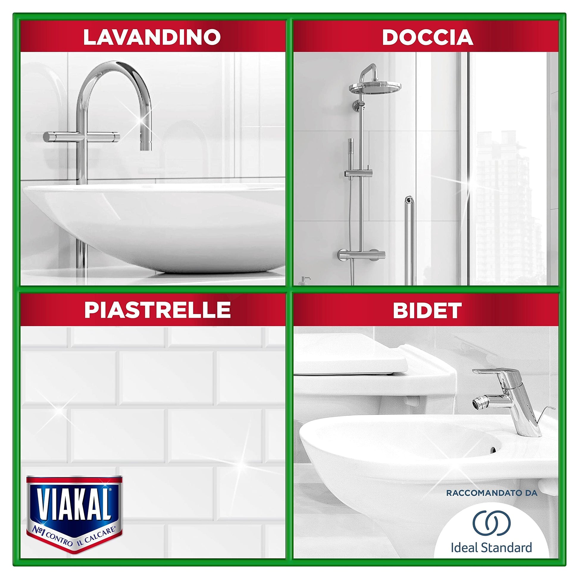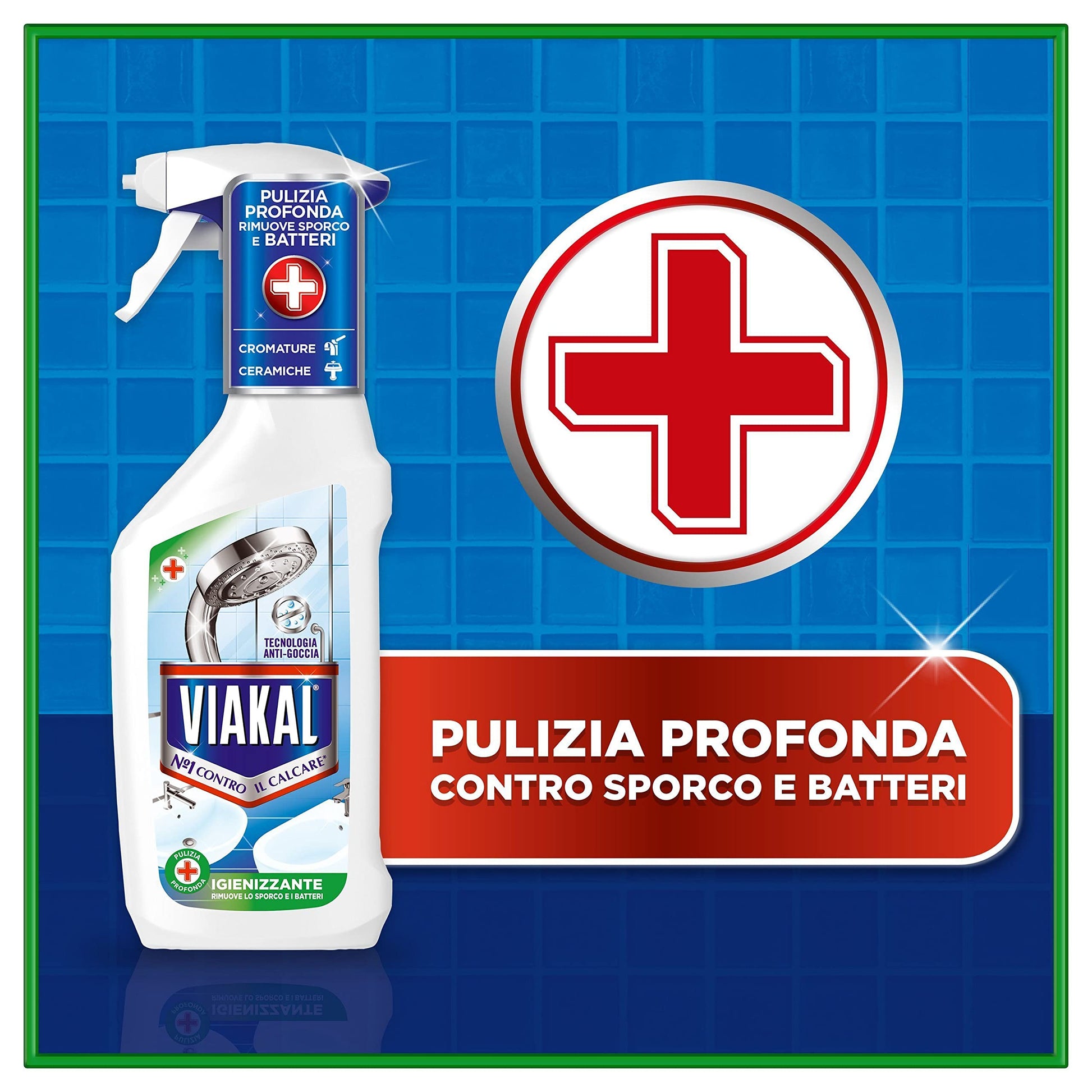 Viakal Anticalcare Detersivo Spray Bagno e Cucina, Igienizzante, 10 x 500 ml, con Tecnologia Anti-goccia, per un Bagno Pulito e Profumato, 100% di Plastica Riciclata
