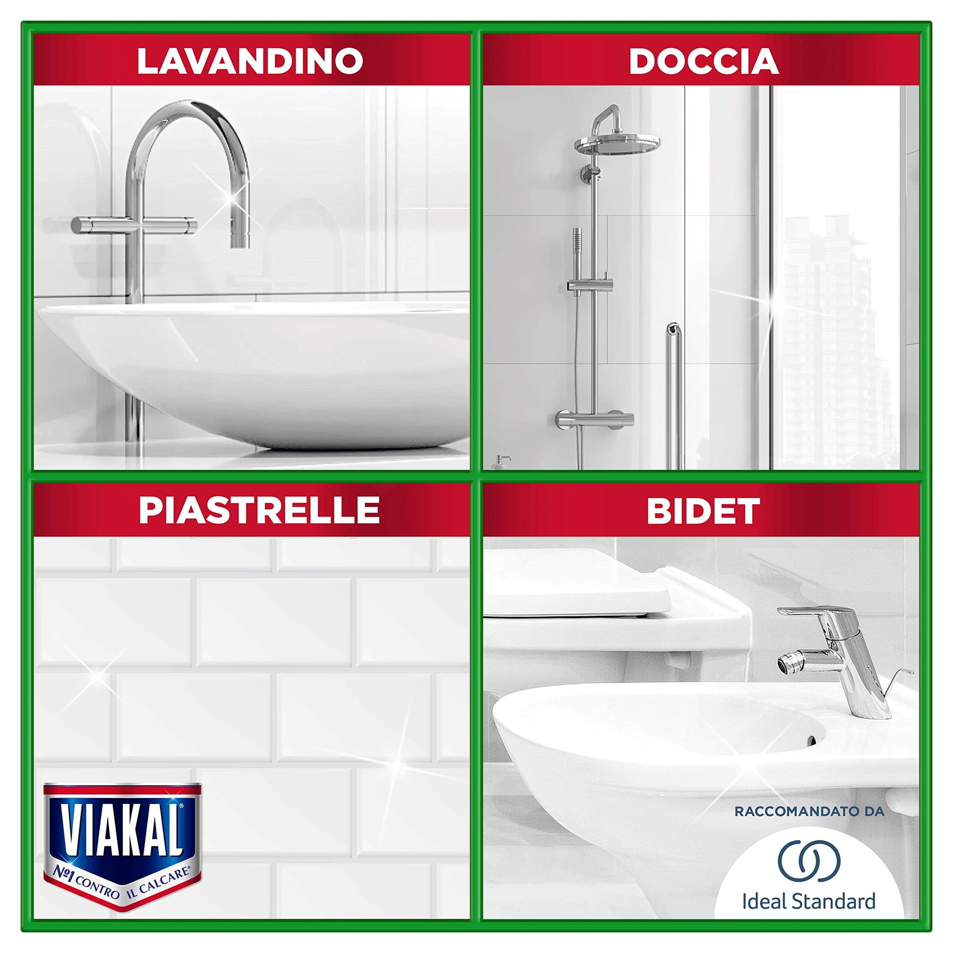 Dettagli: Descrizione Viakal Spray Classico è il tuo primo alleato contro il calcare: elimina rapidamente il calcare e le macchie d'acqua difficili, insieme allo sporco e ai batteri intrappolati all'interno. Questo spray agisce sulle superfici del bagno e della cucina, dalle cromature a quelle in ceramica, dalle piastrelle alle porte della doccia, per rimuovere le imperfezioni e lasciare una lucentezza luminosa. La formula non solo rimuove il calcare, ma impedisce che si riformi sulle superfici. La tecnologia anti-goccia previene la formazione di nuove macchie d'acqua, offrendoti la comodità di una lucentezza duratura. La formula deterge in modo intenso ma delicato ed è sicura da usare, in quanto è priva di cloro, candeggina e ammoniaca. Lasciati sorprendere dalla piacevole fragranza di Viakal e dalla comoda esperienza di pulizia. Ingredienti <5% Tensioattivi Non Ionici, Profumo, Hexyl Cinnamal Indicazioni Spruzzare su una superficie mirata. Lasciare agire, risciacquare. Per le incrostazioni difficili, lasciare agire per 3 minuti.