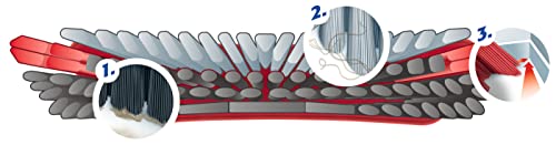 - 3 diverse setole: setole nere morbide per polvere fine, setole grigie per capelli e particelle grossolane e setole rosse dure inclinate per una migliore pulizia degli angoli