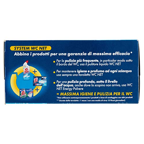 Dettagli: Per mantenere igiene e profumo ad ogni sciacquo usa sempre una tavoletta WC net. WC net profumoso ocean fresh: igienizza - grazie alla sua speciale formula garantisce igiene e pulizia ad ogni sciacquo. Profumo duraturo - grazie agli oli essenziali nella sua formula, rilascia un piacevole ed intenso profumo di pulito dal primo all'ultimo giorno efficacia anticalcare - la speciale formula con agenti attivi aiuta a prevenire. Flusso dopo flusso, la formazione del calcare all'interno del tuo wc. Istruzioni d'uso: agganciare la tavoletts sul borso del WC dove scende più acqua.