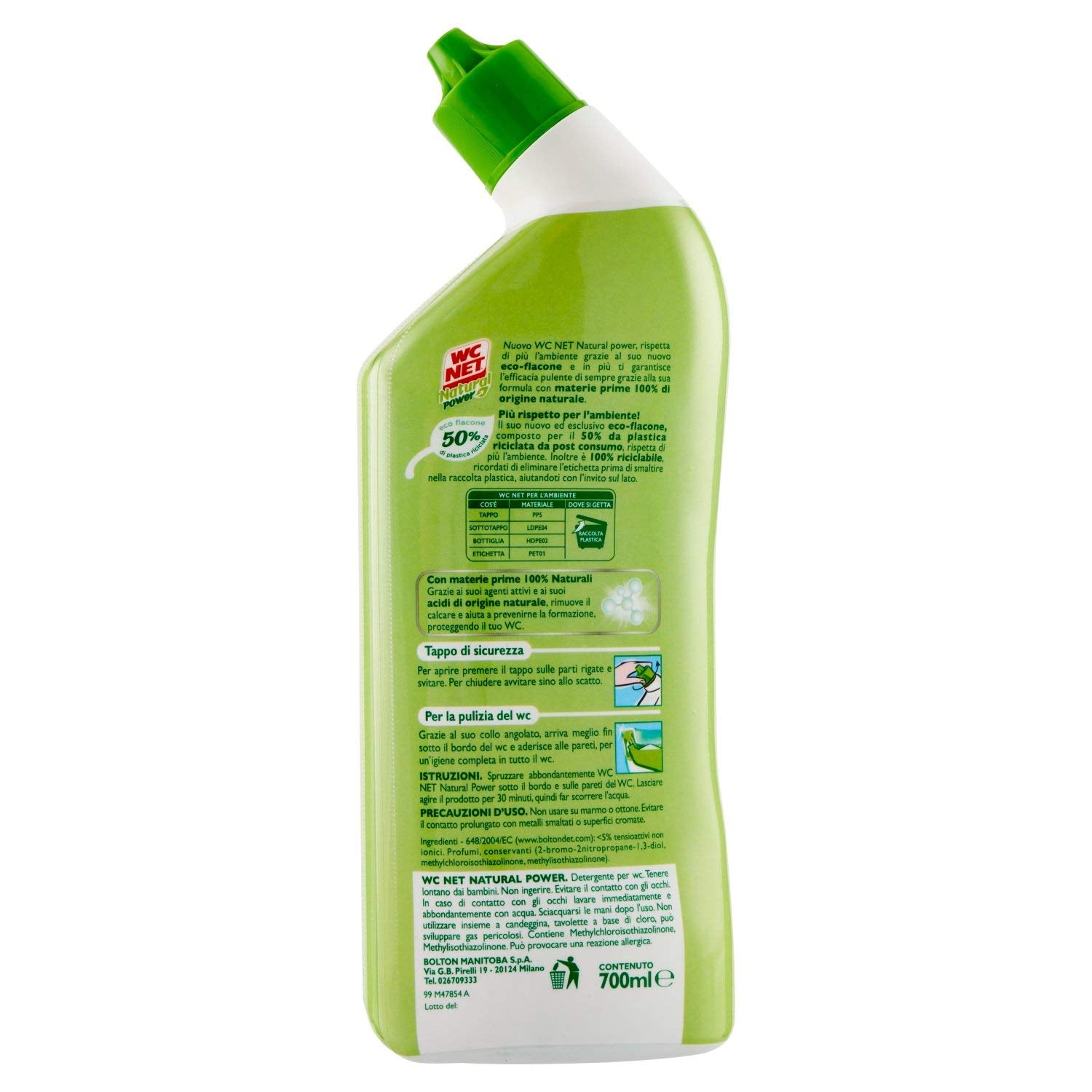 Dettagli: WC NET NATURAL POWER Rispetta di più l'ambiente grazie al suo nuovo eco-flacone e in più ti garantisce l'efficacia pulente di sempre grazie alla sua formula con materie prime 100% di origine naturale. Più rispetto per l'ambiente! Il suo nuovo ed esclusivo eco-flacone, composto per il 50% da plastica riciclata da post consumo, rispetta di più l'ambiente. Inoltre è 100% riciclabile, ricordati di eliminare l'etichetta prima di smaltire nella raccolta plastica, aiutandoti con l'invito sul lato della confezione. Materie prime 100% Naturali Grazie ai suoi agenti attivi e ai suoi acidi di origine naturale, rimuove il calcare e aiuta a prevenirne la formazione, proteggendo il tuo WC.