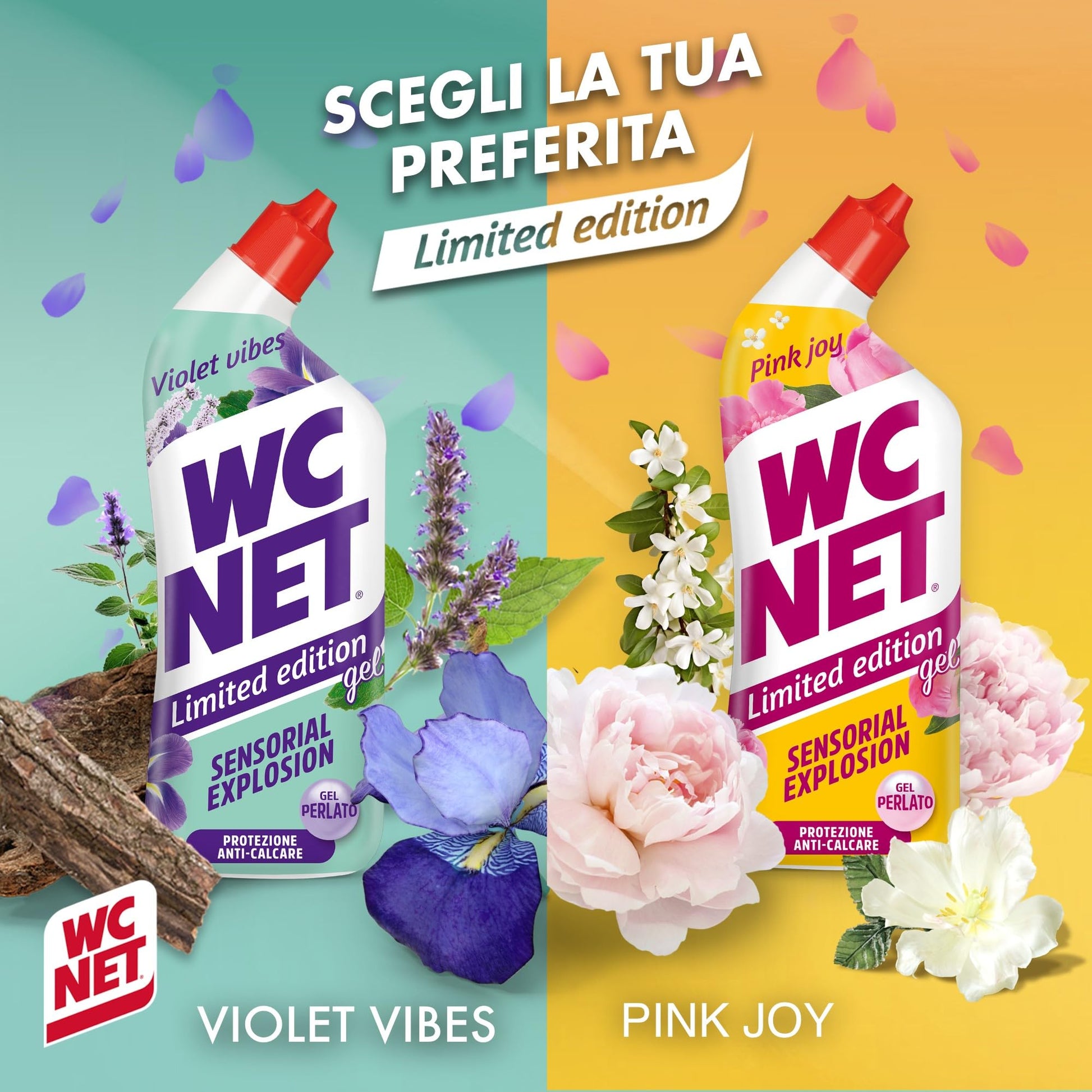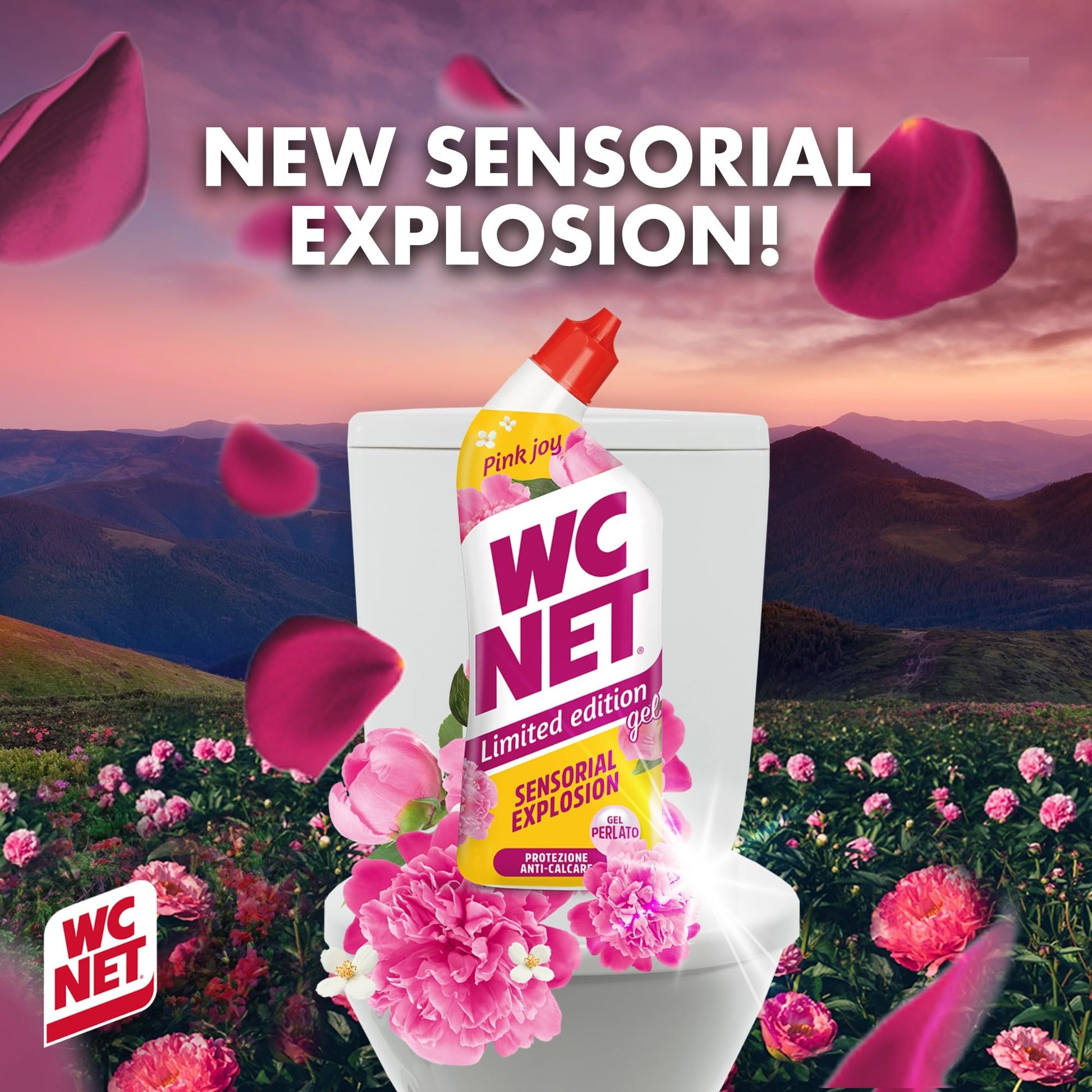 Wc Net - Limited Edition Pink Joy, Detergente Liquido per Sanitari, Essenza Peonia e Muschio Bianco, Prevenzione Calcare e Igienizzante per WC, 700 ml x 4 Confezioni