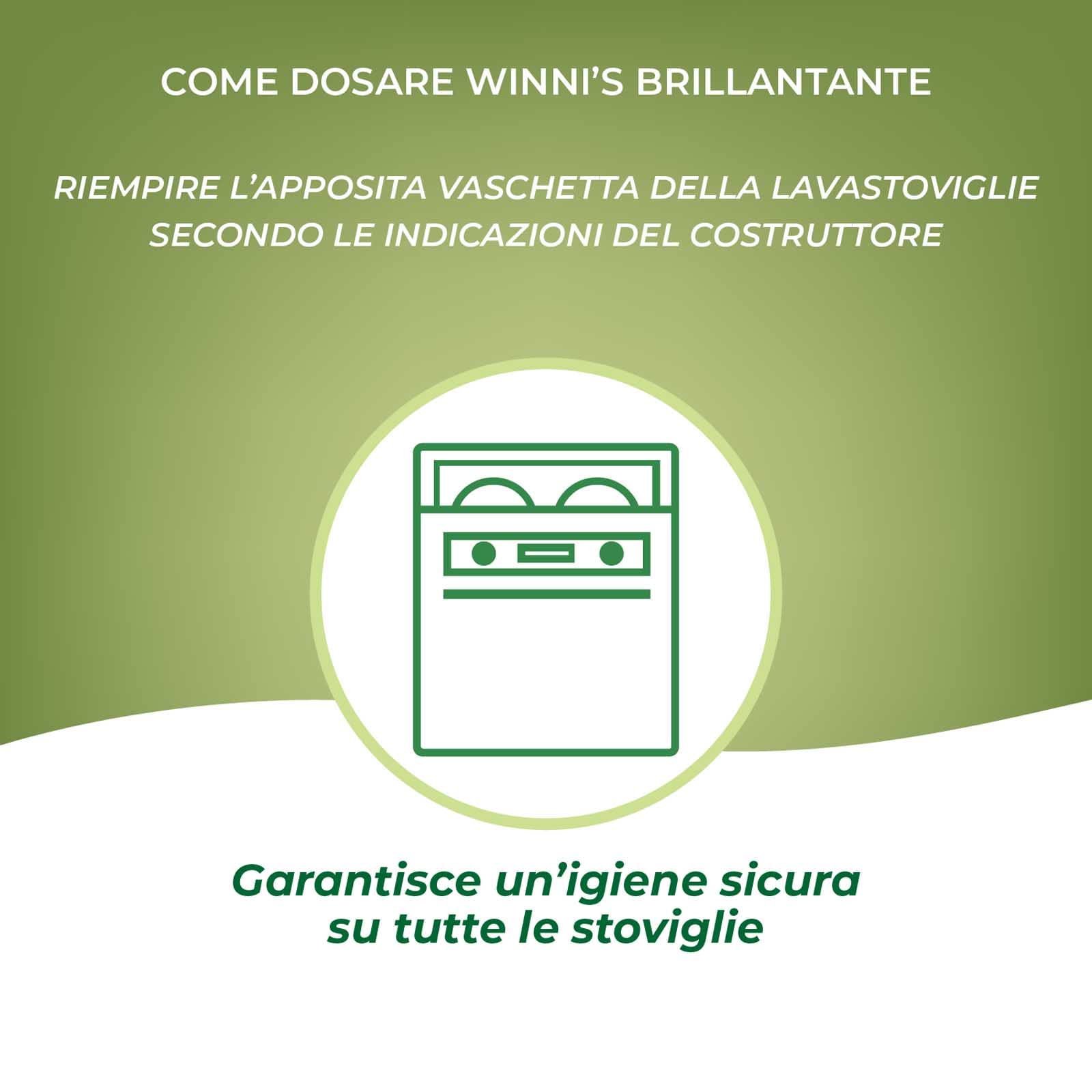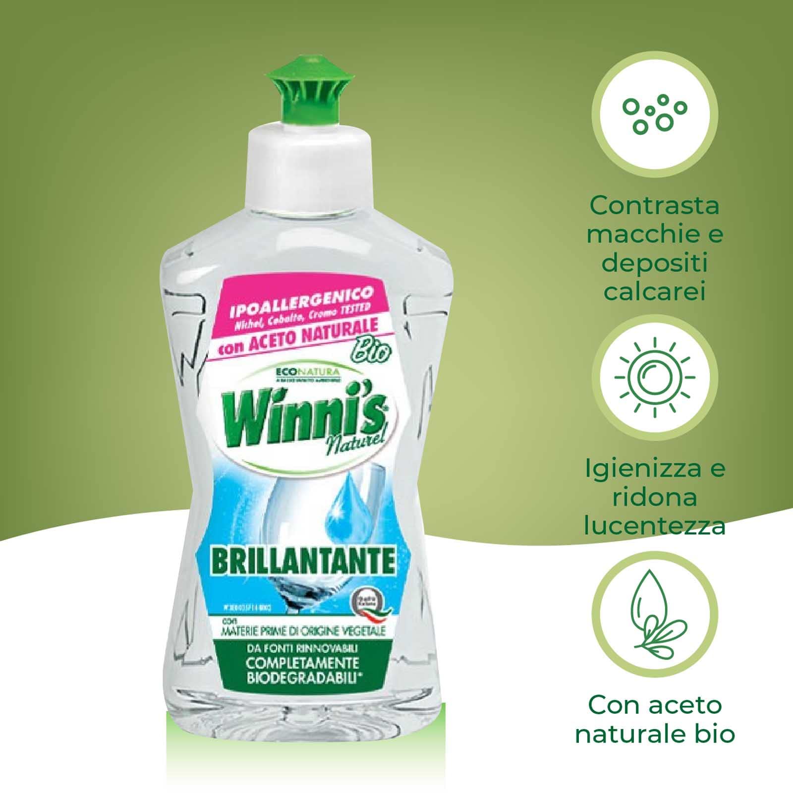 Winni's Naturel Brillantante per Lavastoviglie con Aceto Naturale Bio Ipoallergenico Materie Prime Origine Vegetale Completamente Biodegradabili - 4 Flaconi da 250ml