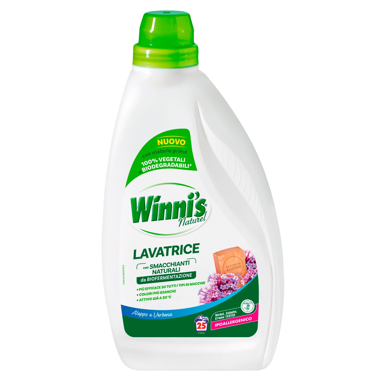 Winni's Naturel Lavatrice Detersivo Liquido con Smacchianti Naturali Fragranza Aleppo e Verbena Attivo a 30°C Ipoallergenico Materie Prime di Origine Vegetali Biodegradabili - 3 Flaconi da 1,125L
