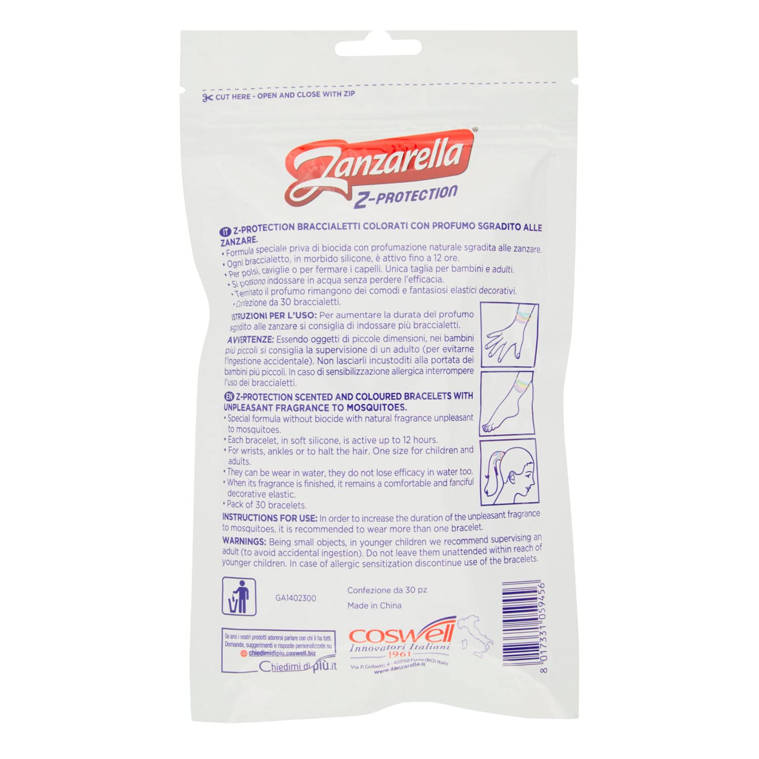 Dettagli: Braccialetti antizanzare per adulti e bambini dal design colorato e divertente, con formula speciale priva di biocida e profumazione naturale sgradita alle zanzare. I braccialetti Zanzarella sono realizzati in puro silicone atossico, un materiale sicuro utilizzato ampiamente per usi alimentari e nella fabbricazione degli oggetti per la prima infanzia. ll silicone dei braccialetti Zanzarella è imbibito di un mix di essenze naturali come la citronella, il geraniolo e la lavanda dalle proprietà insetto repellente ampiamente dimostrate, efficaci contro tutte le specie di zanzare, compresa la zanzara tigre. Le fragranze si liberano gradualmente nell'arco delle 12 ore successive all'apertura della confezione e il braccialetto non perde efficacia anche se immerso in acqua. Terminato l'effetto i braccialetti possono essere usati comodi e fantasiosi elastici decorativi per polsi, caviglie o capelli. Si consiglia di utilizzare uno o più braccialetti in caso siano presenti molte zanzare. Zanzarella da sempre sottopone i propri prodotti agli standard più rigidi per garantire la miglior qualità ed una protezione adatta a tutta la famiglia e nel rispetto dell'ambiente.